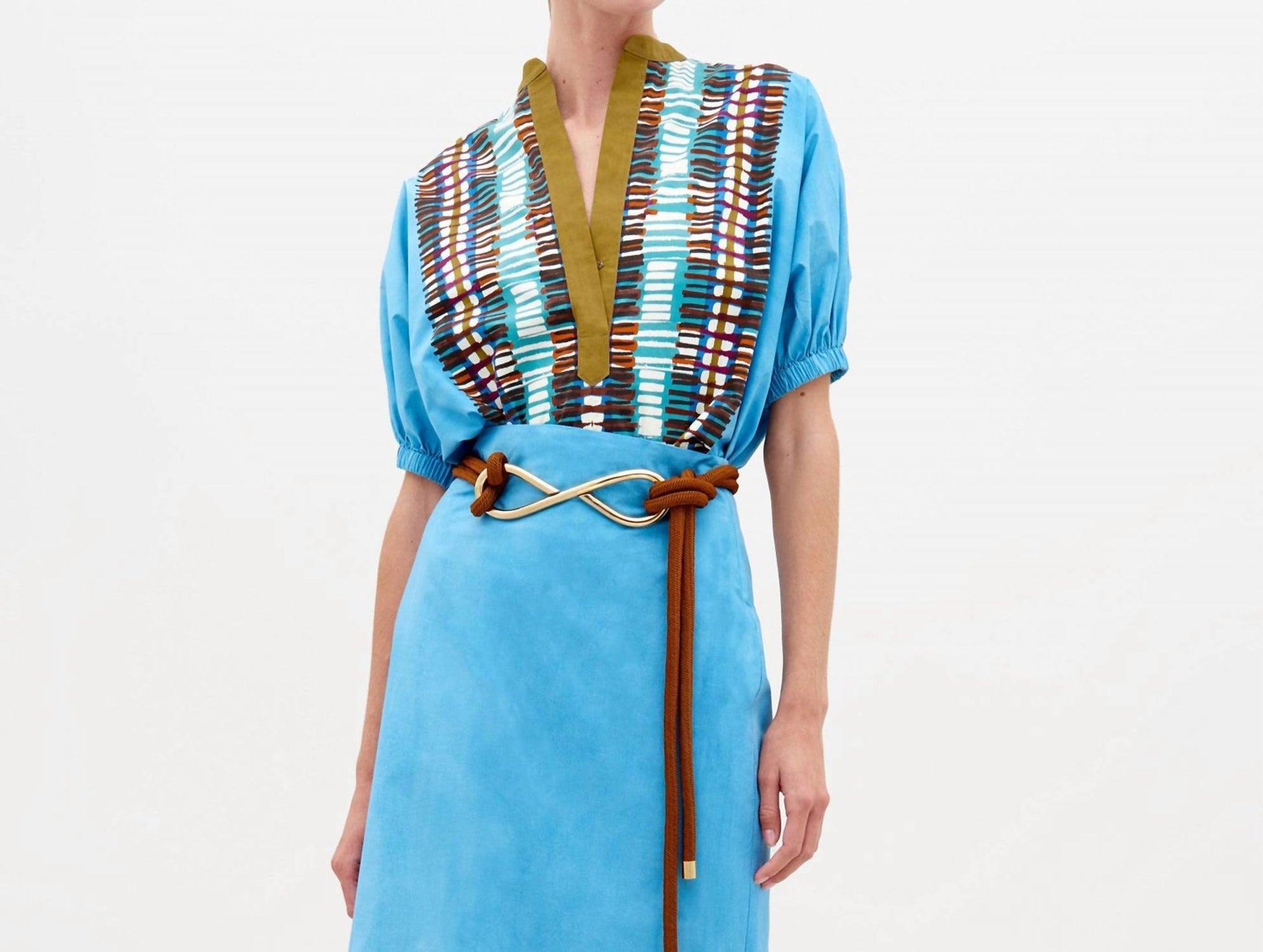 A versatile blouse that works from desk to dinner! The Susanne Blouse by Silvia Tcherassi is a stunning piece crafted from 100% cotton, featuring elbow-length gathered sleeves for a chic and breezy look. Designed with an abstract print and a V-neckline with contrasting trim, this blouse adds a touch of elegance to any outfit. Proudly made in Colombia from exquisite Italian textiles, its loose and oversized fit ensures comfort and style. This pull-on style is best maintained with dry cleaning, making it perfect for spring travel or as a thoughtful Mother's Day gift.