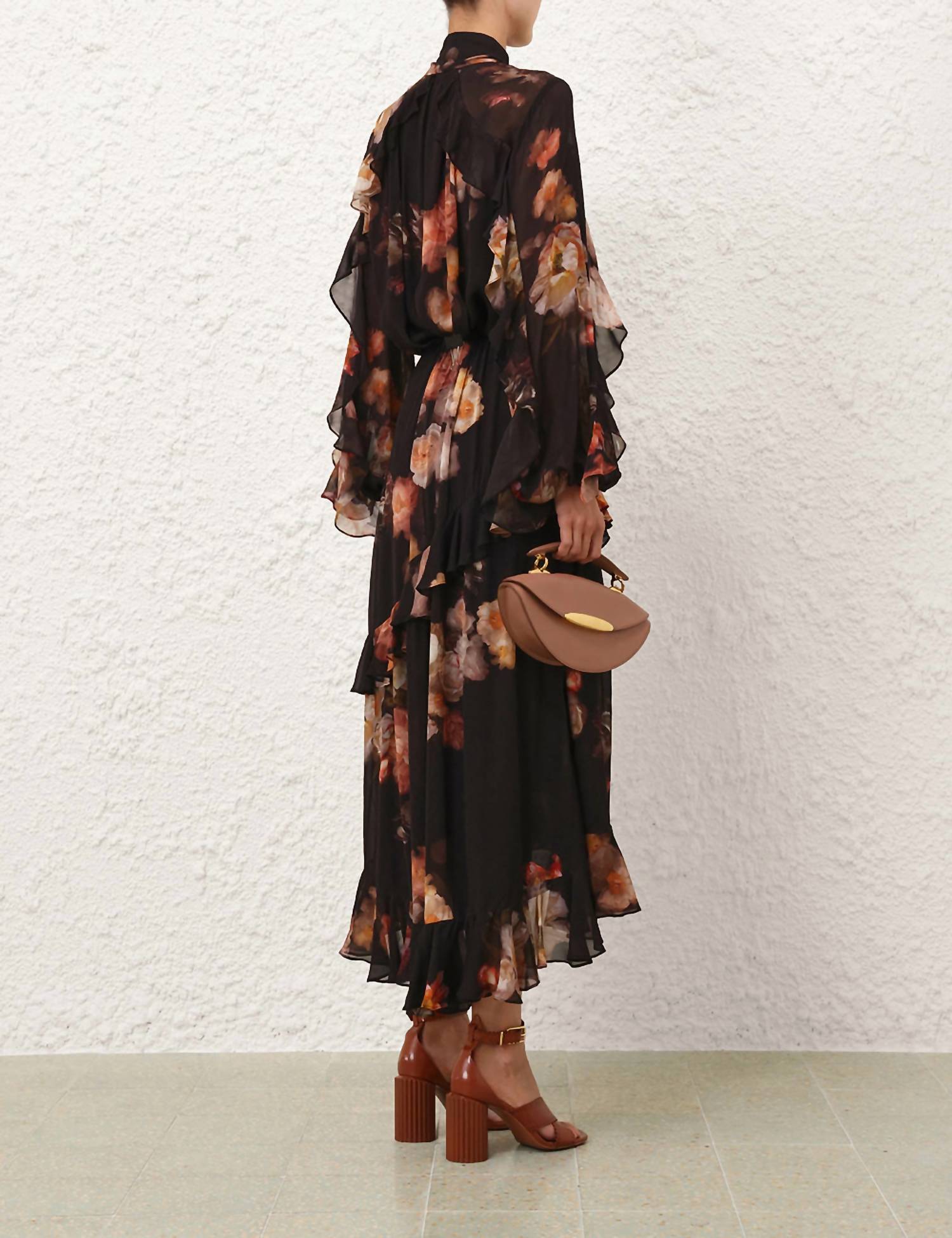 A versatile blouse that works from desk to dinner! Introducing the Zimmermann Hypnotic Flutter Blouse in enchanting Russet Floral, a perfect choice for a sophisticated dinner party. This relaxed-fit blouse features long blouson sleeves with elasticated cuffs, a V-neckline, and a self-covered necktie closure, accentuated by charming frill detailing. Crafted from 100% viscose, both the main fabric and lining ensure a lightweight and breezy feel. Care for this elegant piece involves dry cleaning only using hydrocarbon solvents, with precautions such as removing detachable trims and avoiding spot cleaning.