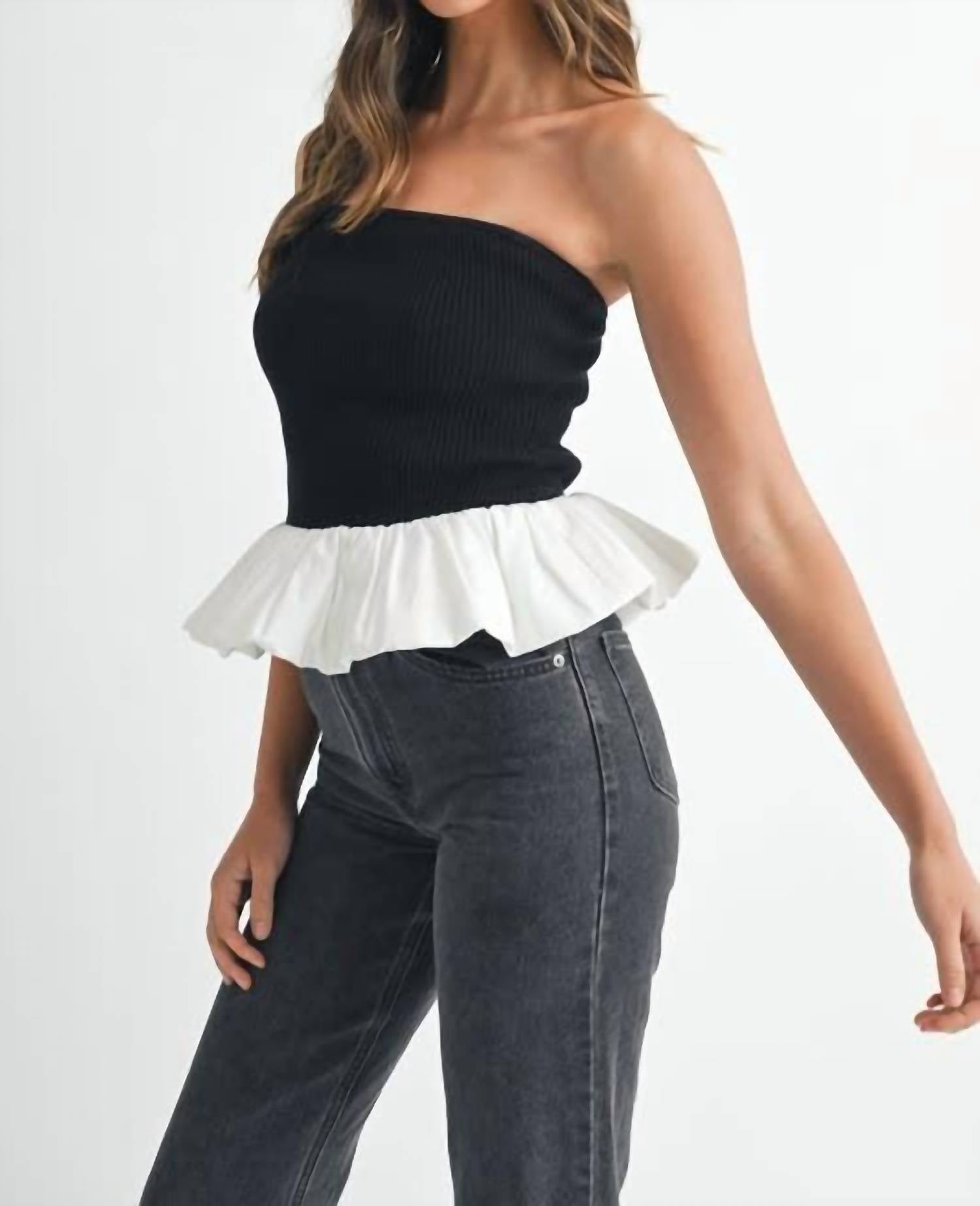 Mable - Ribbed Knit Bodice Bubble Peplum Tube Top