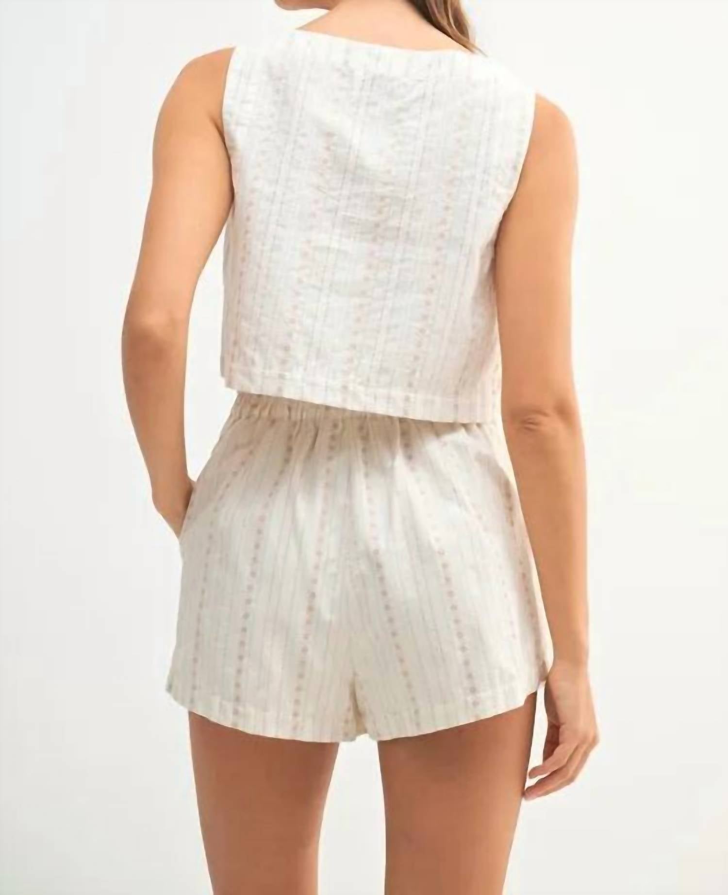 Pair this crop top with your favorite high-waisted jeans or maxi skirt. Embrace a chic summer vibe with the Floral Square Neck Set by MABLE in Light Taupe, designed to keep you stylishly unique. This women's crop top features a sleeveless design with a patterned monochrome floral motif. Made from 100% rayon, it offers true-to-size comfort with an elastic back and convenient hidden zipper alongside button closure. Care instructions include machine wash and tumble dry, perfect for a beach day or casual Thanksgiving gathering.