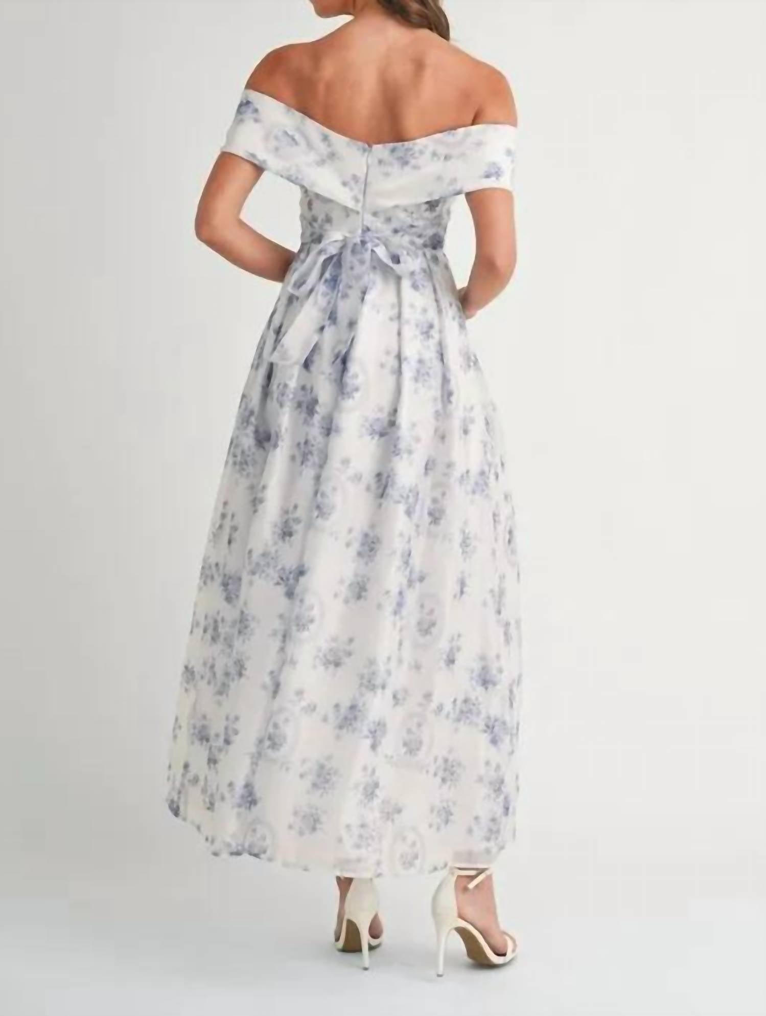 A maxi dress that is just as cute as it is comfortable. Boho chic masterpiece in vibrant blue floral, perfect for any evening event. Elegant ensemble features short sleeves and an off-the-shoulder neckline, enhancing its feminine allure. Crafted from 100% polyester with a lining of 90% polyester and 10% spandex. Slightly stretchy maxi dress offers both comfort and style. Convenient zip closure. Machine wash cold, tumble dry low.