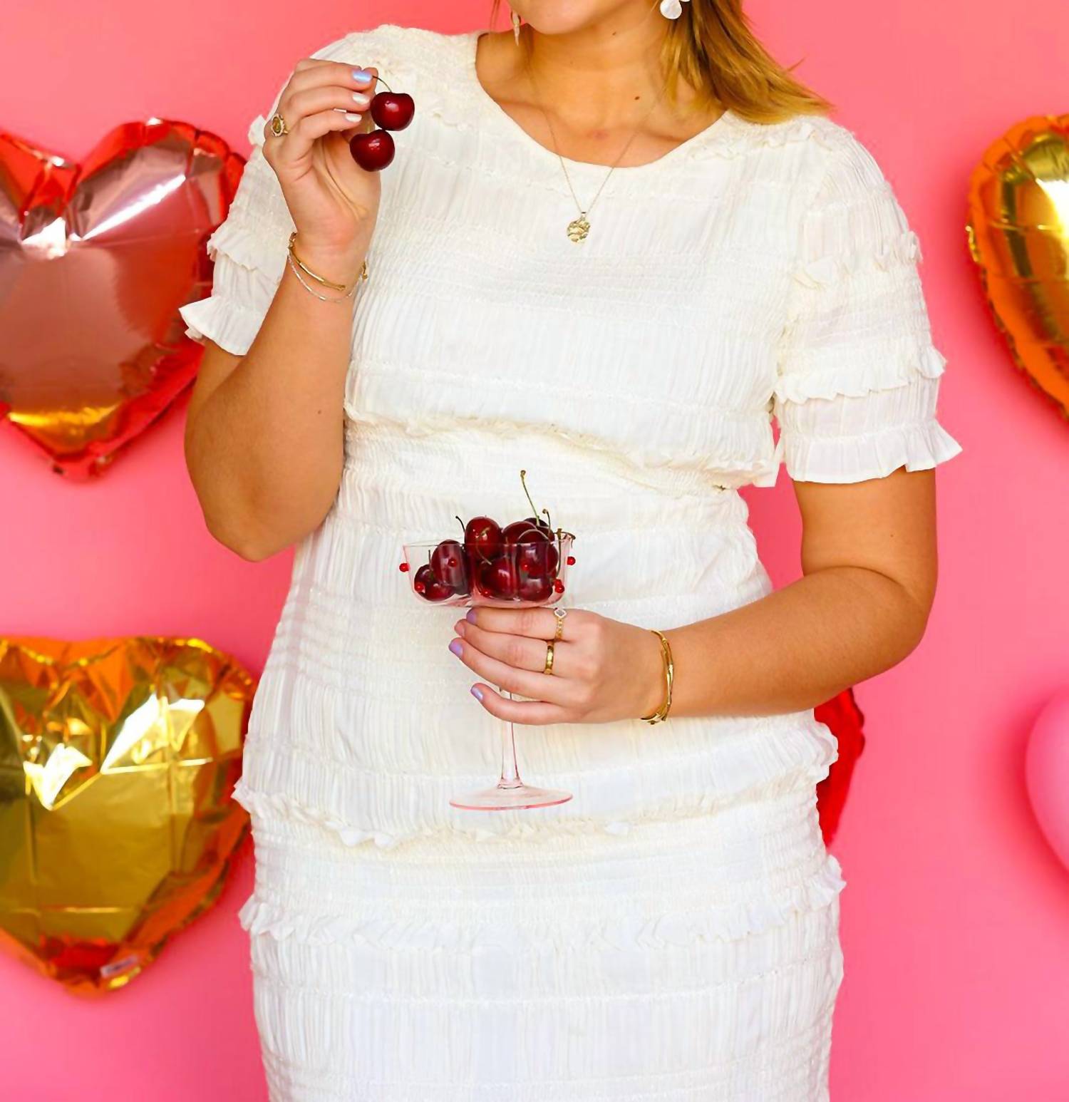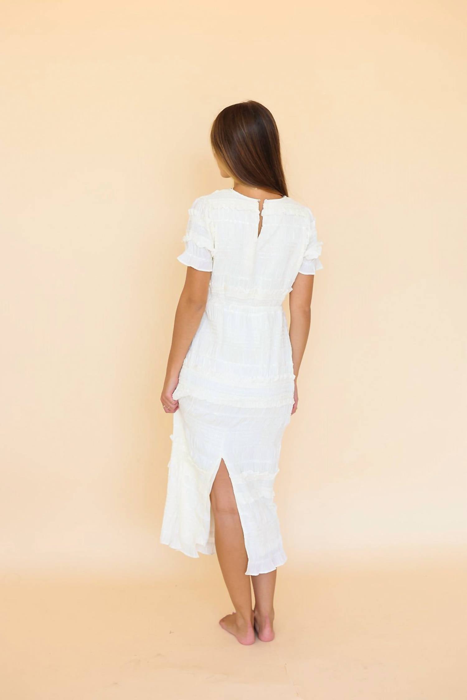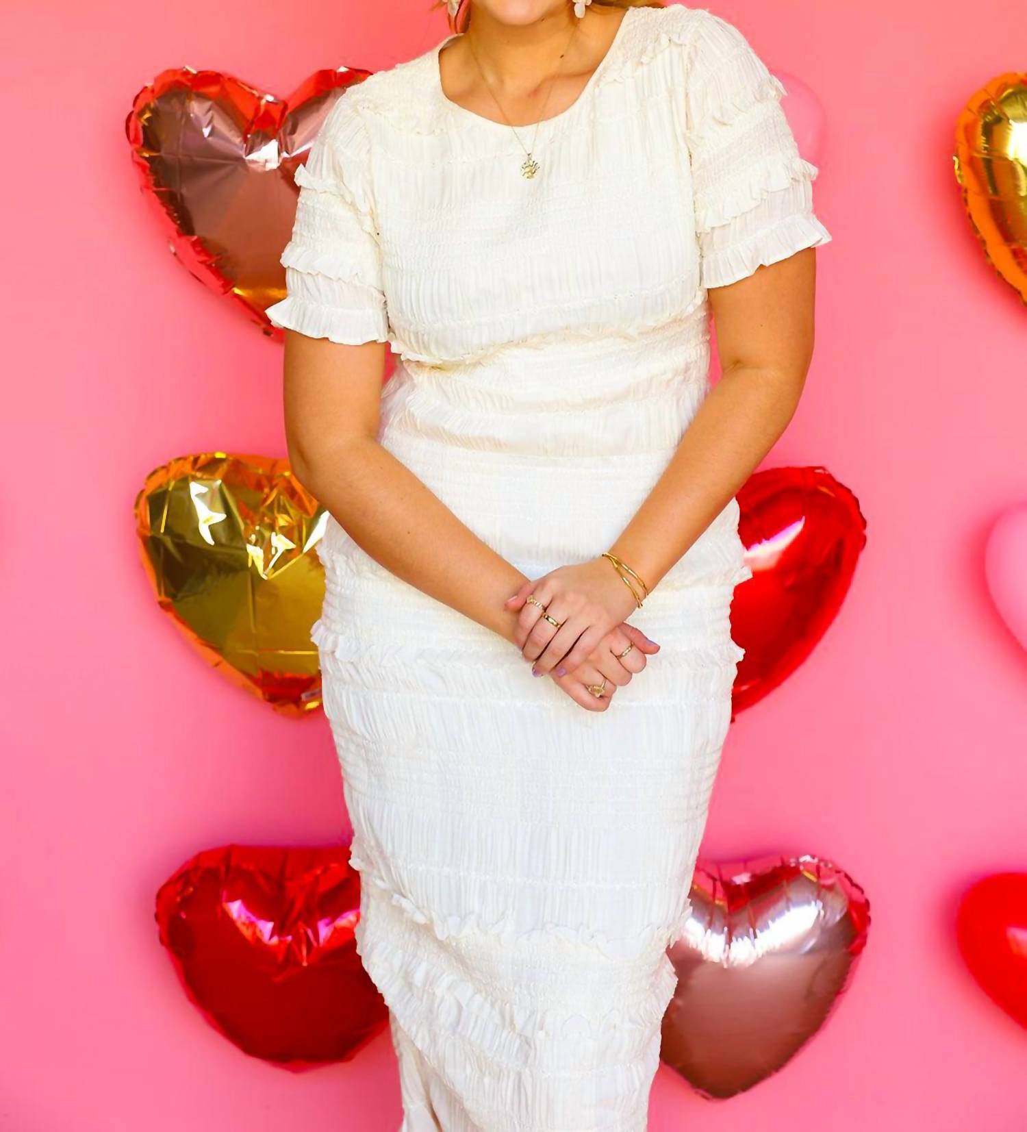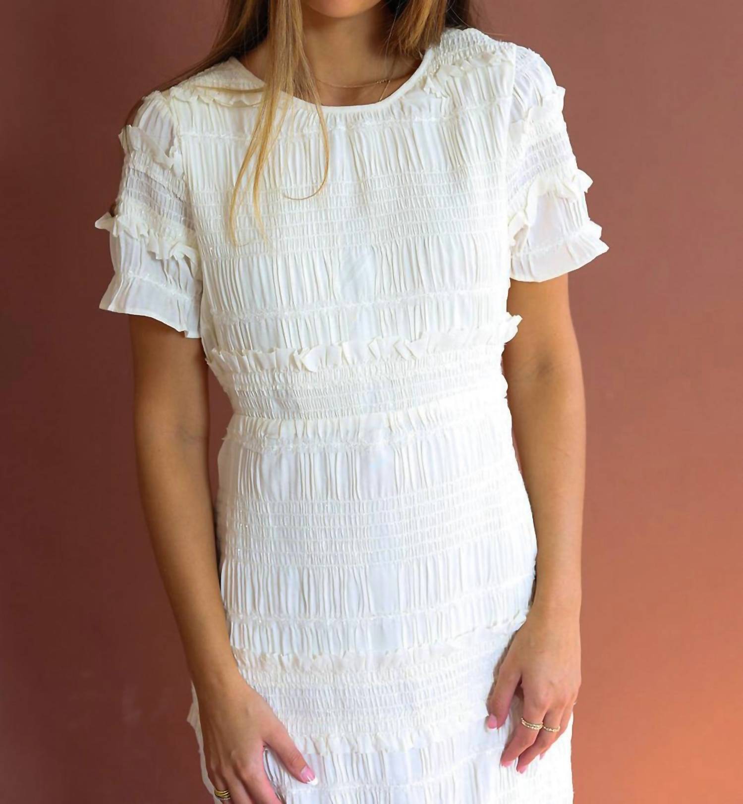 Comfortable and cute, this casual day dress has it all. Elevate your style with the So Sophisticated Cream Ruffle Dress by MABLE, the perfect choice for any special occasion. Featuring short sleeves, elegant ruffles, and statement-making tiered sleeves, this sheath dress in a solid cream adds a touch of sophistication. Crafted for women who embrace a chic aesthetic, it offers convenient pull on closure. Care is simple with machine wash and tumble dry instructions. Model Lauren is wearing a large (5'10" height, 34C bust).