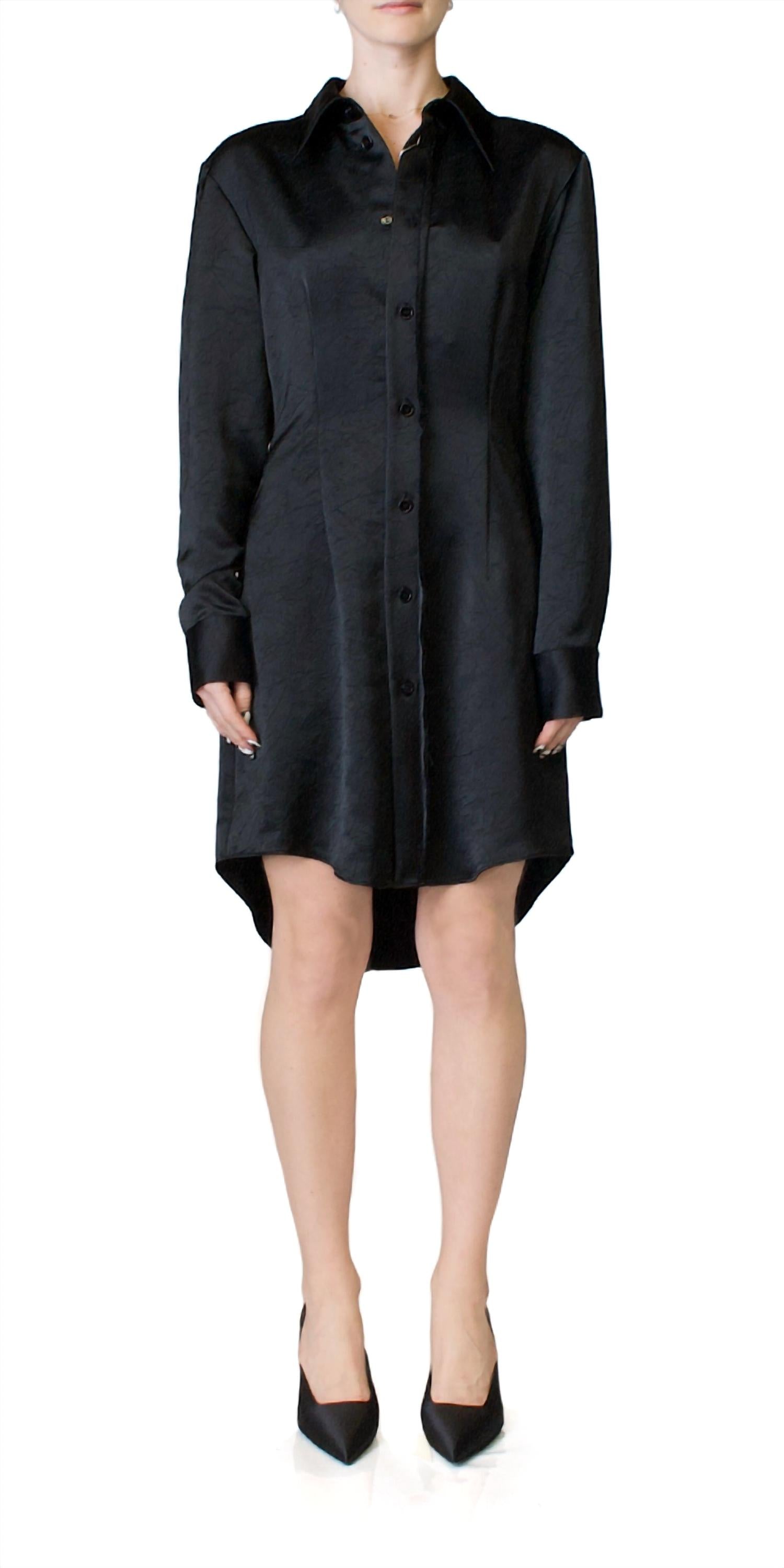 Just add slides or mules and you are good to go. Discover the Silky Button Front Midi Dress by Maison Margiela, a stunning example of the Maison's artistry and precision. This elegant black dress, with long sleeves and made from 100% polyester, showcases waist-defining darting and banded cuffs. Crafted in Italy with a chic spread collar, it's secured with a button front closure. Ideal for any wardrobe, it fits true to size and is tailored in Italian sizing.