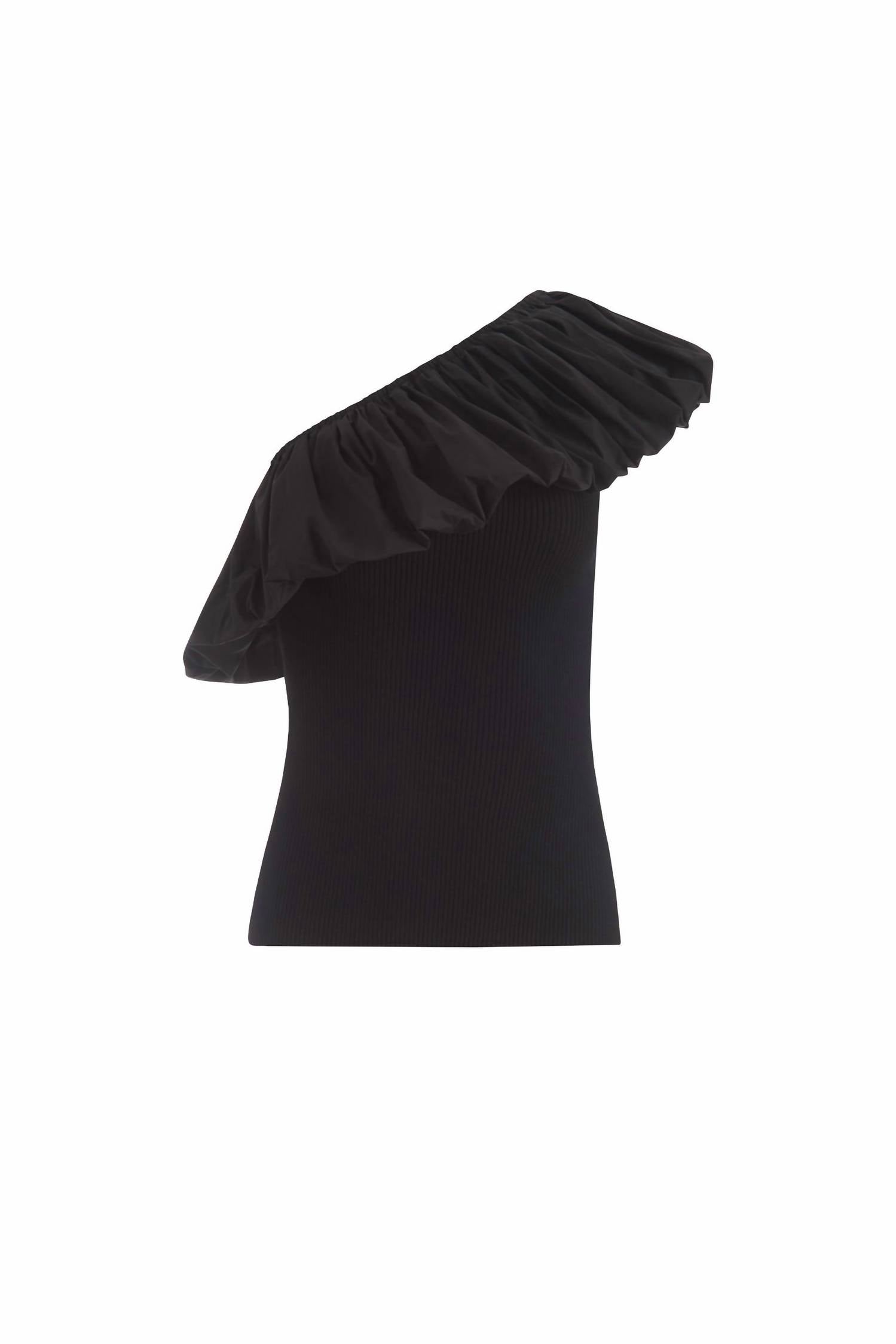 A timeless blouse that will never go out of style. The Lucy One Shoulder Top by Marie Oliver is a standout piece designed for sophistication and style. Featuring delicate spaghetti straps and a striking voluminous ruffle, this black blouse is perfect for making a statement. Crafted from a blend of 72% viscose and 28% polyester for the body, and 100% cotton for the ruffle, it offers a luxurious feel and impeccable drape. Care instructions include hand washing cold, with options to hang dry or opt for dry cleaning for best maintenance.