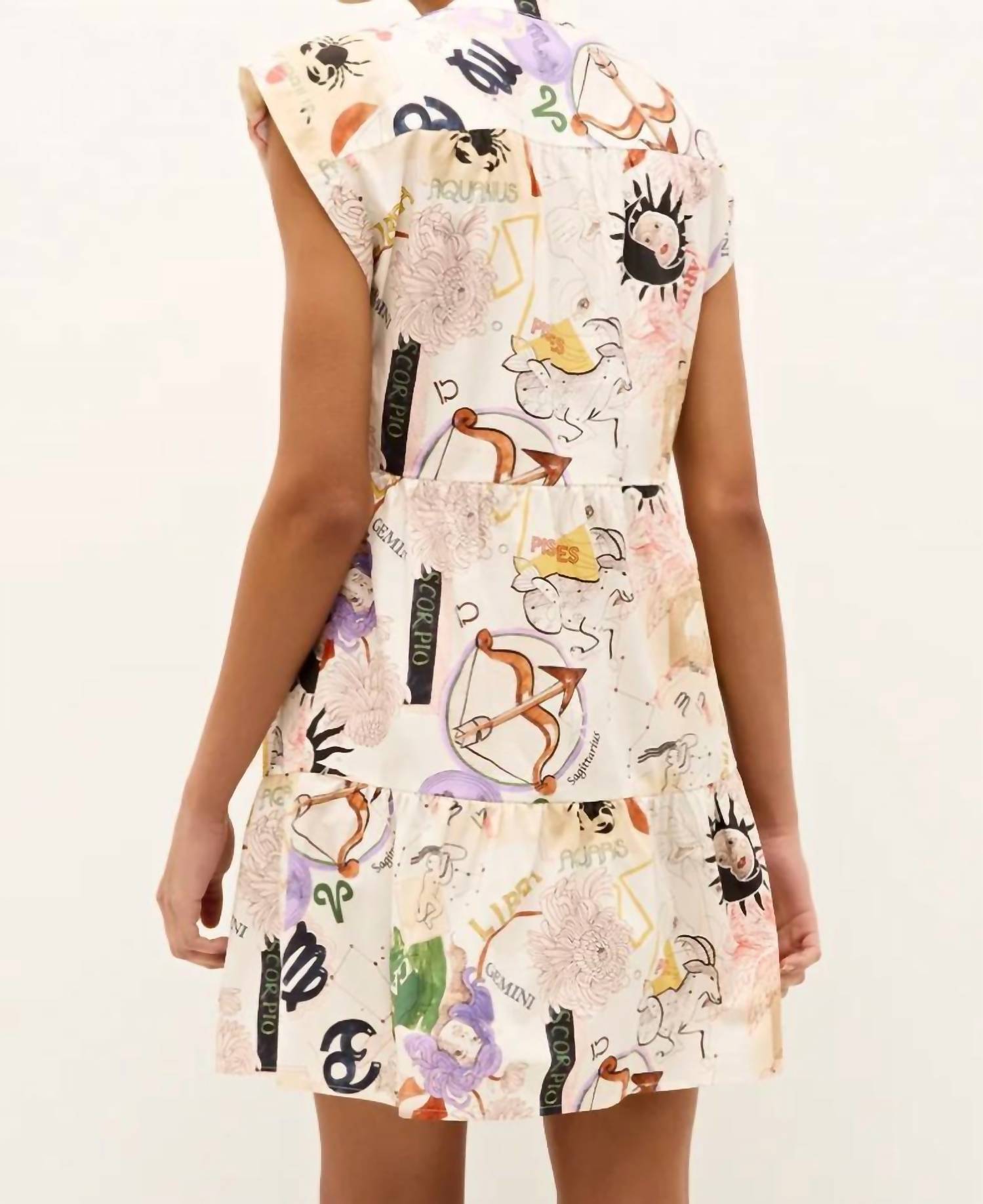 The kind of easy and flattering dress you'll be reaching for all season long. Introducing the Marie Oliver Women's Lachlan Cotton Poplin Dress, a stylish choice for vacation or casual outings. Crafted from 100% cotton, this mini, A-line dress features short sleeves for a breezy look. The playful Zodiac graphic pattern adds a touch of streetwear trend to the classic silhouette. Closure: Hidden button closure. Perfect for summer, it's designed with a crewneck for a comfortable fit.