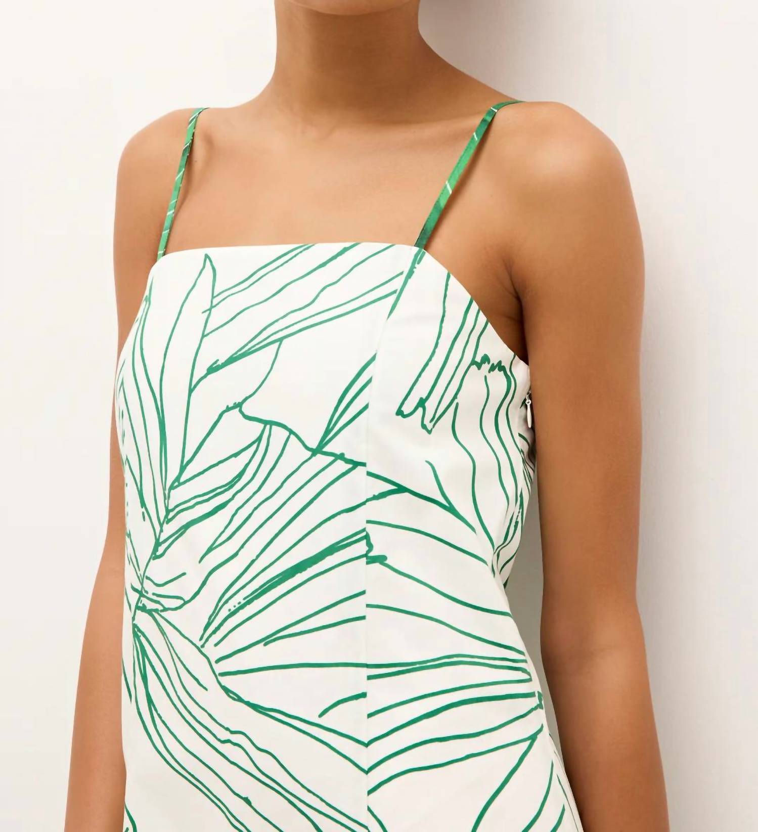 A short and breezy dress for those warmer days. Meet the perfect playful sundress. Featuring a line-drawn botanical print in a fresh green-and-white color palette, pretty princess seams, adjustable spaghetti straps, and a flirty kicked out hem, Anita checks all of high-summer’s sartorial boxes. -Princess seams -Side seam invisible zipper with hook & eye closure -Adjustable spaghetti straps -100% cotton -Fully lined