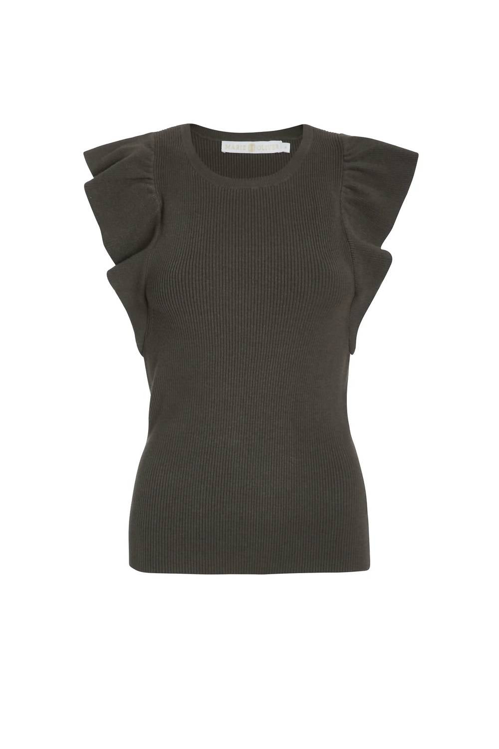 Fit, fabric and functionality. This tank top checks all the boxes. The Rory Ribbed Ruffled Sleeve Top by Marie Oliver offers a perfect blend of style and comfort in a chic Juniper Green. This women's top features short sleeves with feminine ruffles and a textured, ribbed bodice for a flattering fit. Crafted from a viscose blend composition of 82% Viscose and 18% Polyester, it's designed for effortless pull-on wear. Care for this stylish scoop neck by hand washing only.