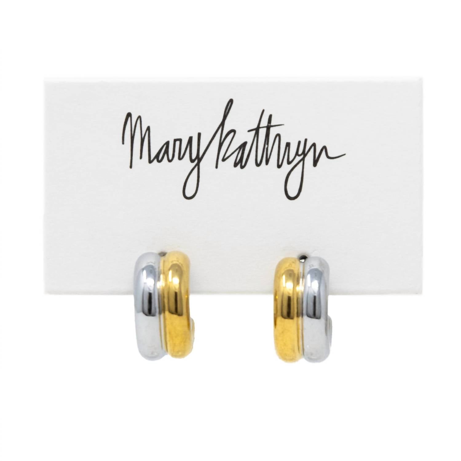 Easy and elegant earrings to complement any outfit. Introducing the Women After Midnight Two Toned Huggies by Mary Kathryn Designs, a chic addition to any jewelry collection. These earrings feature a simple yet elegant design with an eye-catching combination of gold and silver tones. Crafted as a staple piece, they seamlessly elevate any outfit you pair them with. A perfect blend of classic and contemporary style, these huggies are a cute addition to your wardrobe.