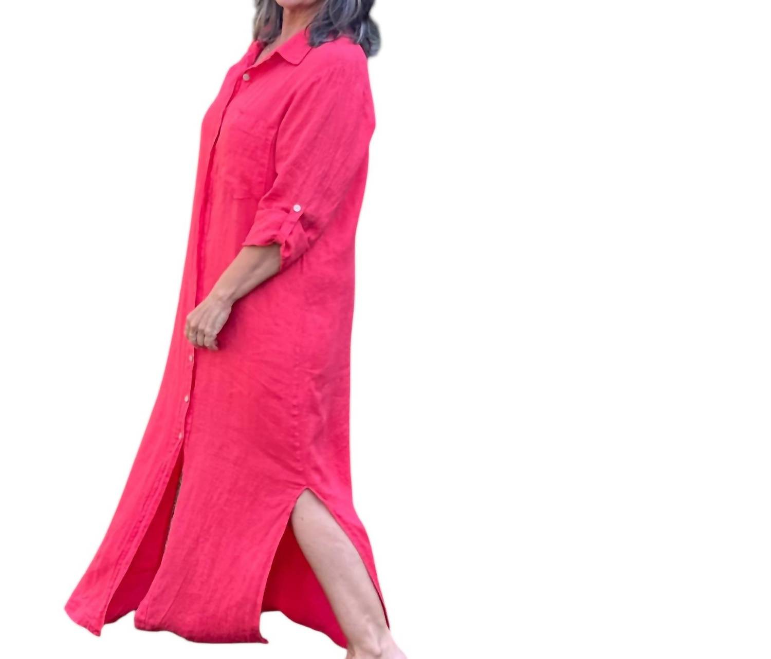 A maxi dress that is just as cute as it is comfortable. This maxi dress features three-quarter sleeves with tabs and a classic collar, ensuring a laid-back yet chic look. Crafted from 100% linen, it measures 49 inches in length and 20 inches in width, designed to fit US sizes 4 to 12. Made in Italy with a button closure, this dress also includes practical pockets, making it ideal for versatile wear.