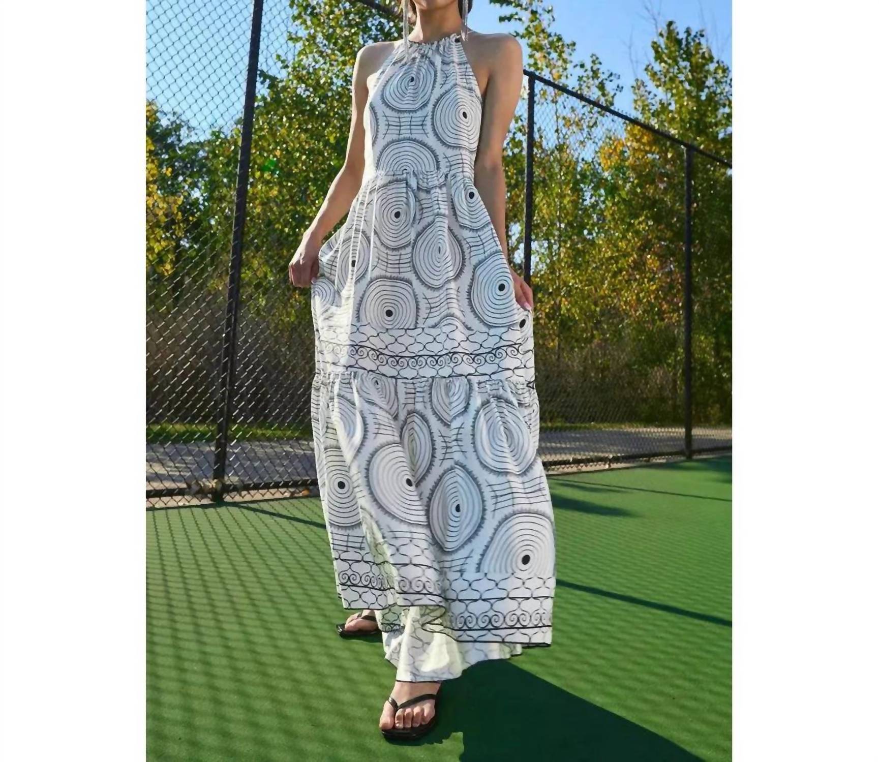 A maxi dress that is just as cute as it is comfortable. Introducing the Hope for Flowers High Low Halter Maxi Dress, a sheath silhouette designed for effortless summer elegance in Ironwork Scarf color. This sleeveless dress is crafted from 100% Naia Acetate, a sustainably sourced cellulosic yarn, offering a luxurious feel akin to silk. Featuring a breezy halter neck and a tiered high/low flounced skirt, the dress measures 53 inches at the front and 58 inches at the back. Closure: Pull on. Adorned with custom border prints and rhinestone tasseled back neck ties, this boho chic piece is perfect for a holiday party.