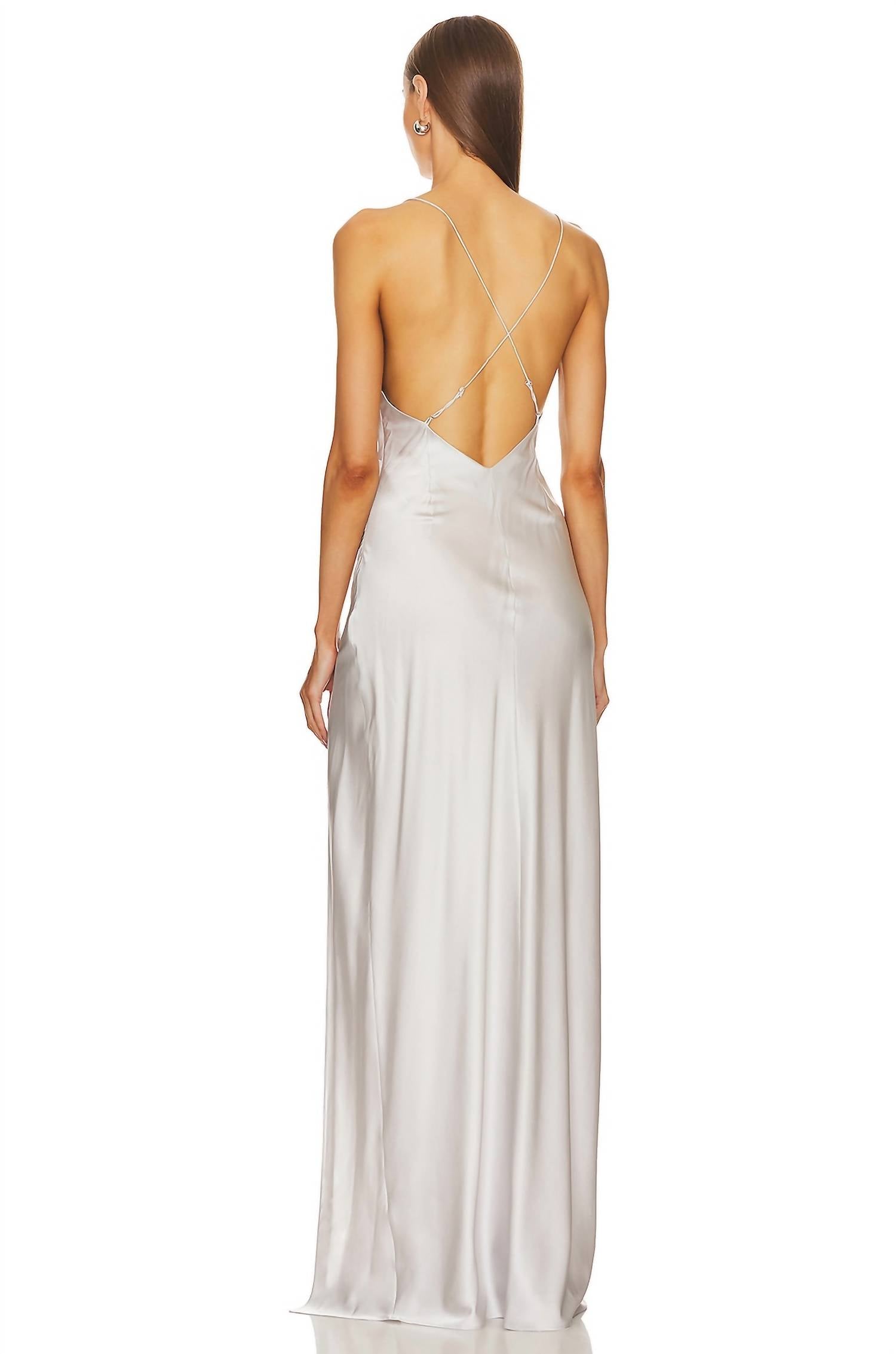 Who doesn't love a good maxi dress? This one you'll be reaching for season after season. Discover the Amina Silk Maxi Dress by SER.O.YA, a sophisticated choice for special occasions. This shimmering silver dress showcases sleek spaghetti straps and a flattering surplice neckline. Made from a luxurious blend of 95% silk and 5% spandex, it gently hugs the body in a sheath silhouette and measures 64.17 inches in length. Designed in China, it features a hidden side closure and is recommended for dry cleaning. Perfect for New Year's Eve or a cocktail party, embrace the monochrome trend with its shiny charmeuse fabric.