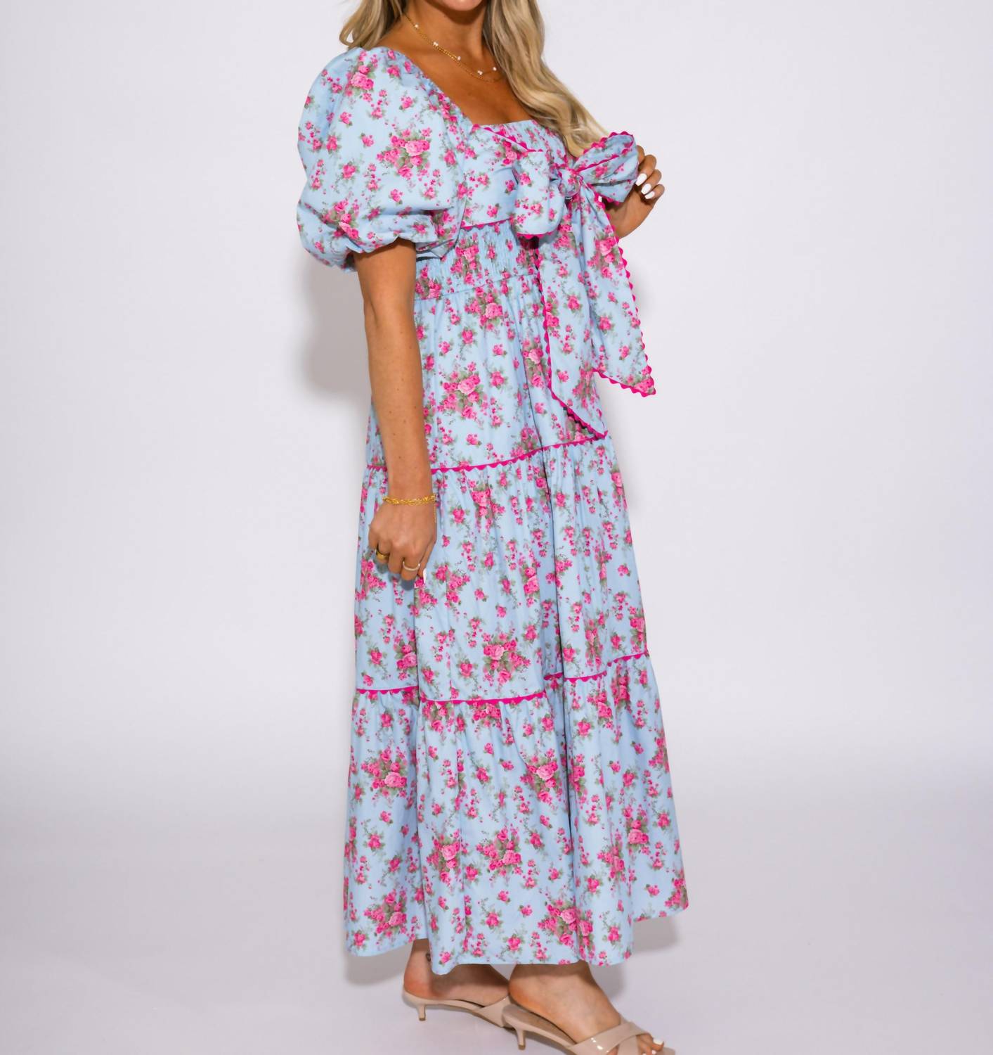 Peach Love - Bows and Blooms Tiered Maxi Dress