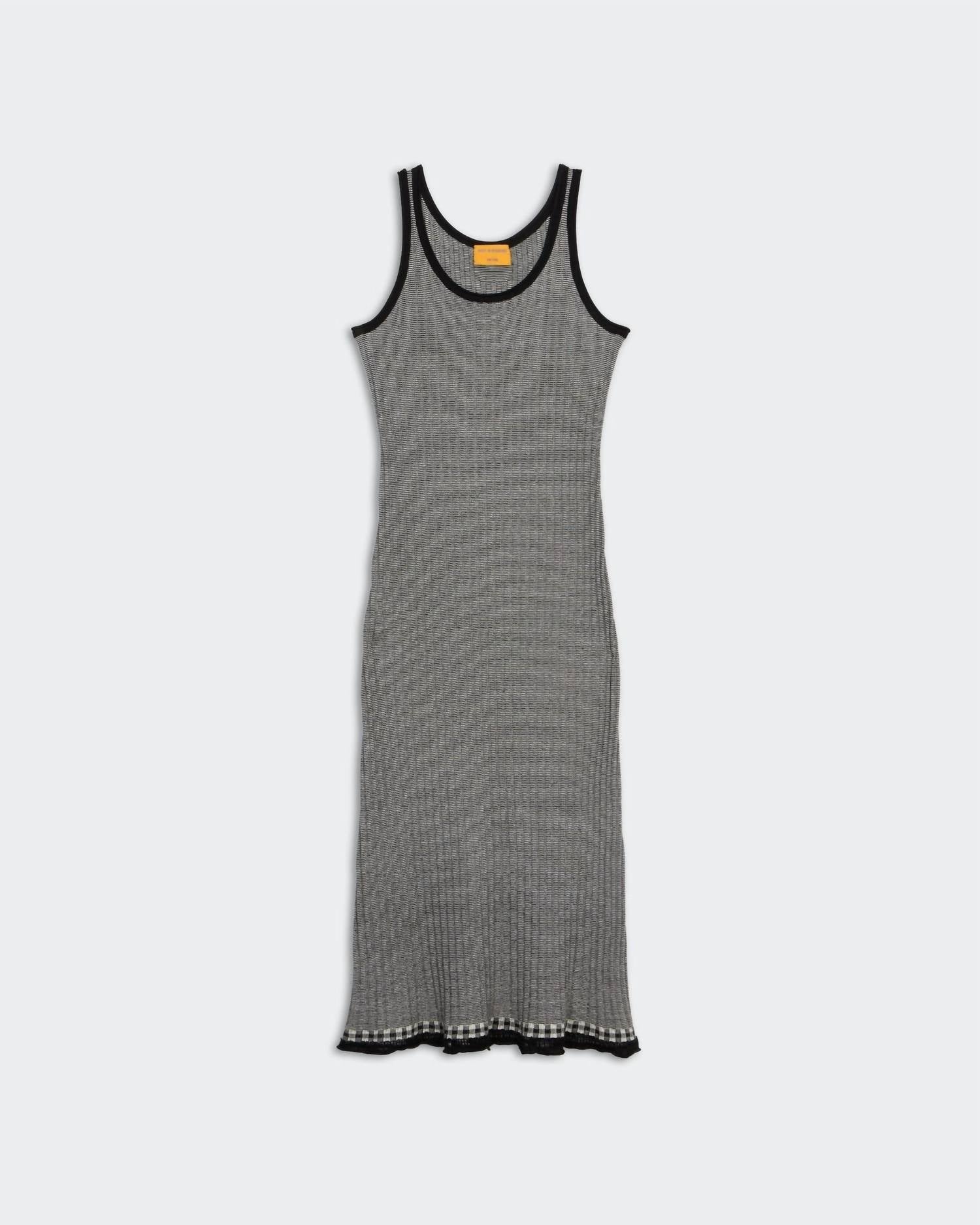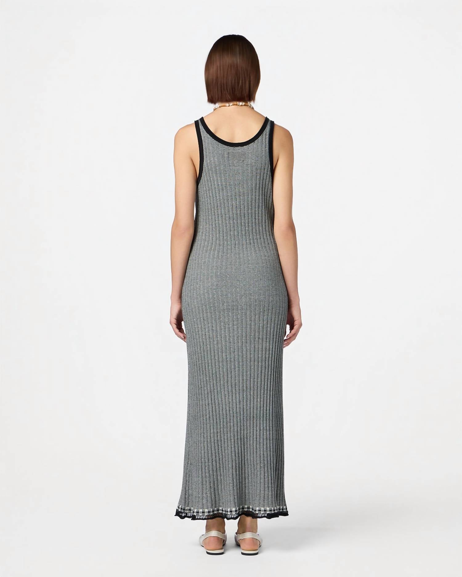 Style this maxi with your favorite statement necklace and sandals for the perfect look. Elevate your summer wardrobe with Guest In Residence's Fine Stripe Maxi Dress. This stylish sleeveless piece features a flattering sheath silhouette and A-line cut, perfect for travel occasions. Crafted from a luxurious silk blend, it boasts an ankle-length design with solid color jersey roll trimming at the scoopneck and armhole. Closure is made easy with a pull-on style, and its chic black and grey stripe pattern adds a touch of sophistication.