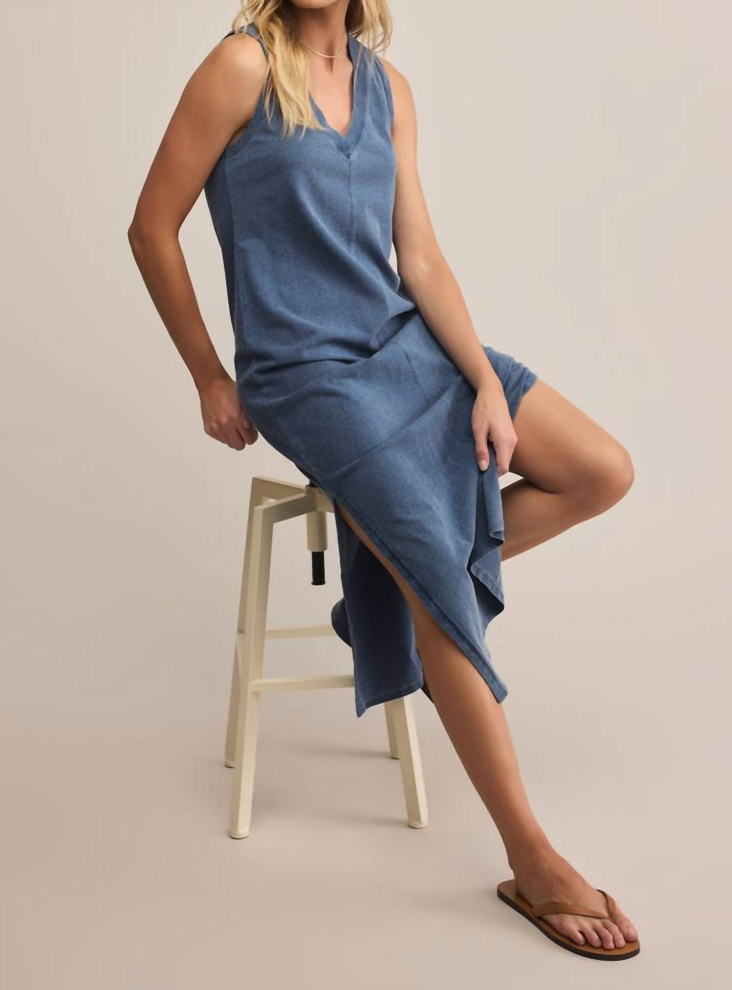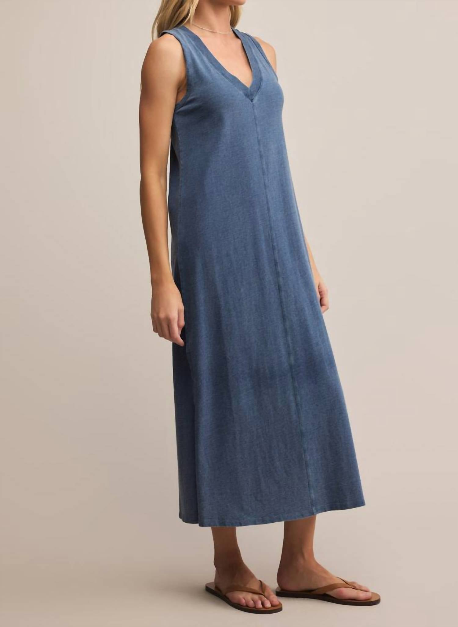 Who doesn't love a good maxi dress? This one you'll be reaching for season after season. Embrace a relaxed elegance with the Coastline Jersey Denim Dress by Z Supply in a classic vintage indigo shade. This sleeveless maxi dress features a v-neckline and wide straps, crafted from 100% cotton in a soft jersey denim material. Designed in an A-line silhouette, it offers an effortless pull-on closure ideal for vacation looks. Care for this handcrafted piece by machine washing on a gentle cycle and hanging to dry.