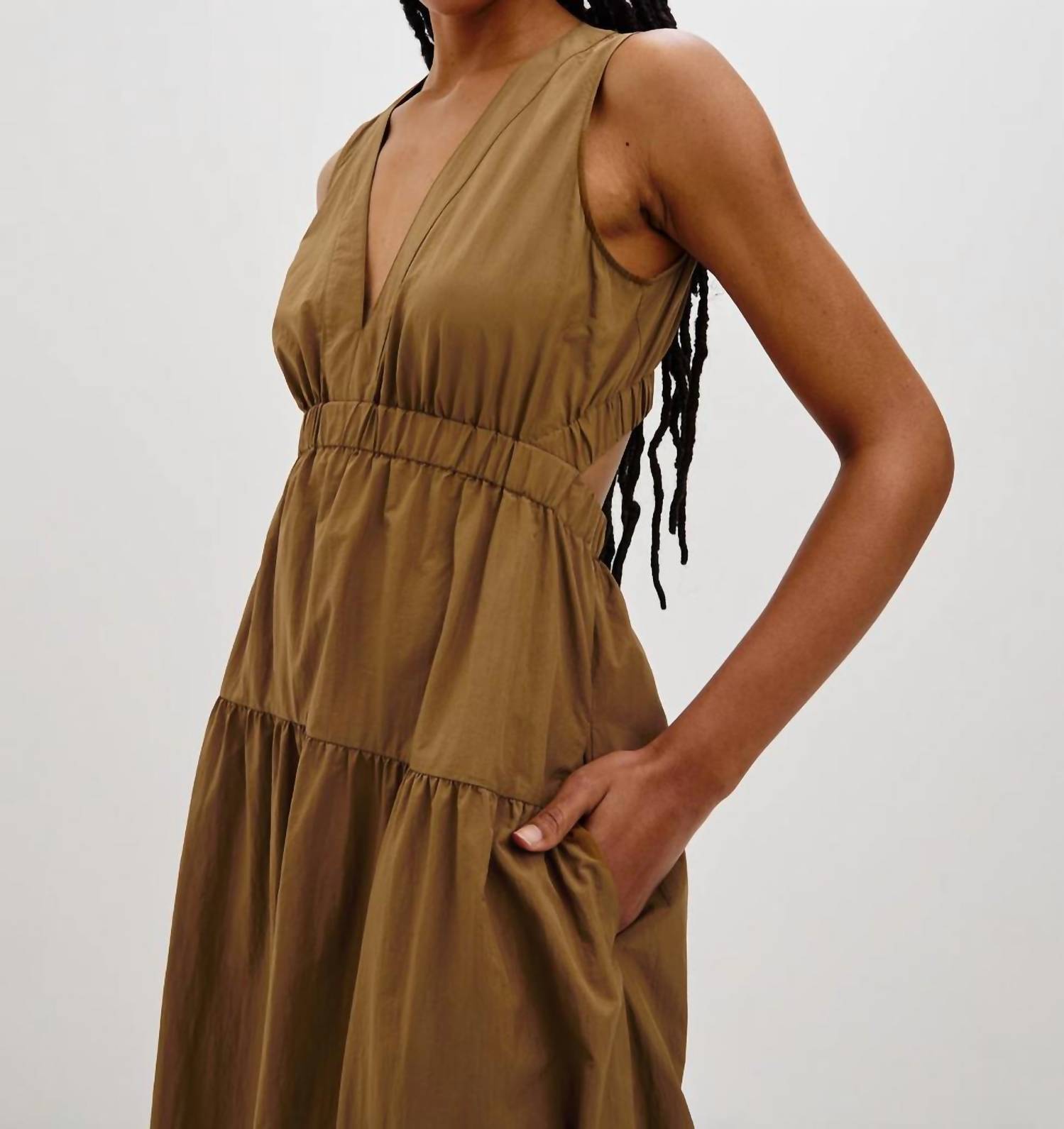 Who doesn't love a good maxi dress? This one you'll be reaching for season after season. Elevate your summer wardrobe with the Rails Genevieve Cut-out Back Dress in a chic sepia hue, designed for modern women who love a blend of style and comfort. This sleeveless maxi dress features an A-line silhouette and a v-neck, crafted entirely from durable 100% Nylon. Enjoy the convenience of a pull on closure and front pockets for enhanced practicality. Originating with a monochrome trend in mind, this dress is machine washable and can be tumble dried for easy maintenance, making it ideal for a vacation wardrobe.