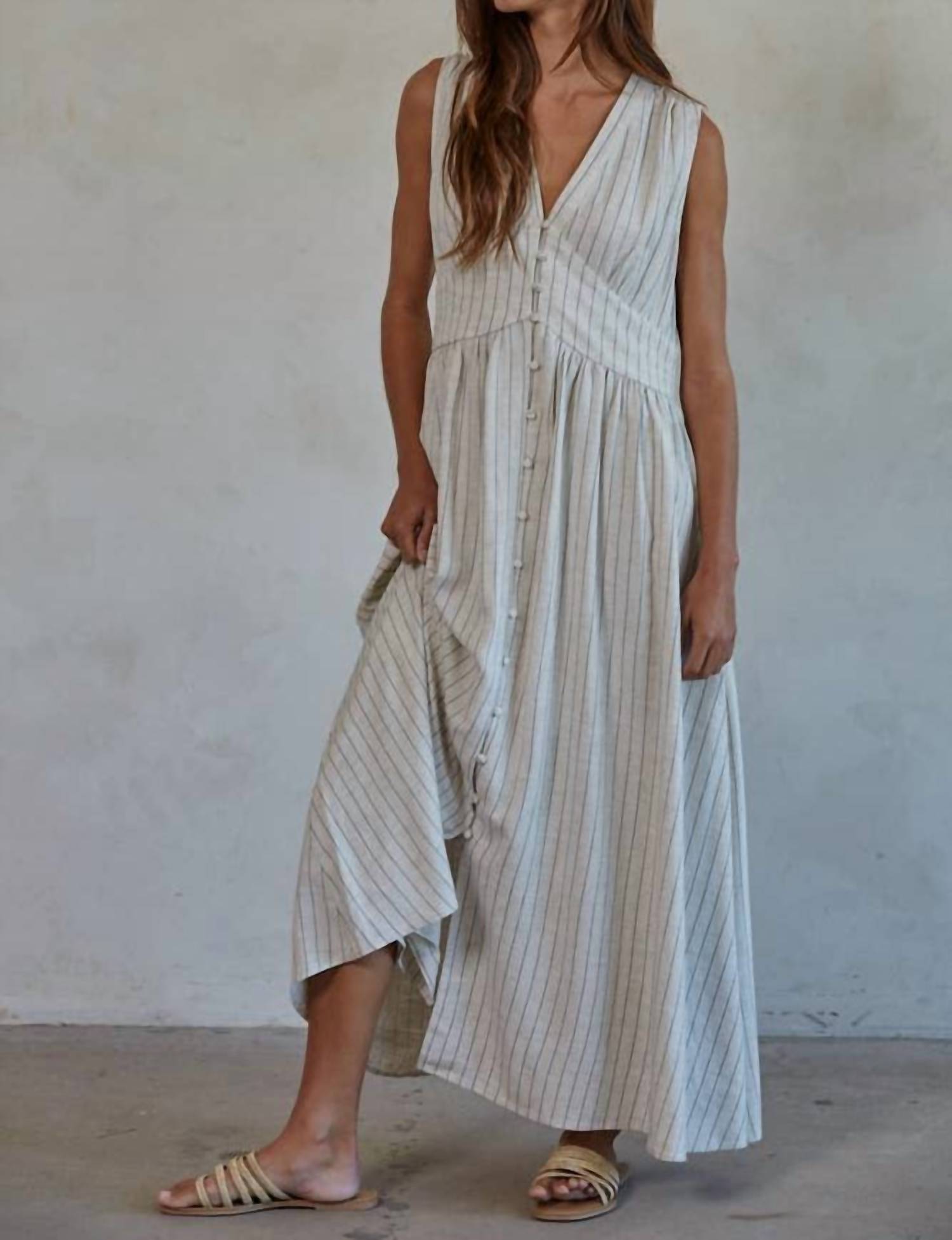 By Together - Skylar Linen Cotton Striped Maxi Dress