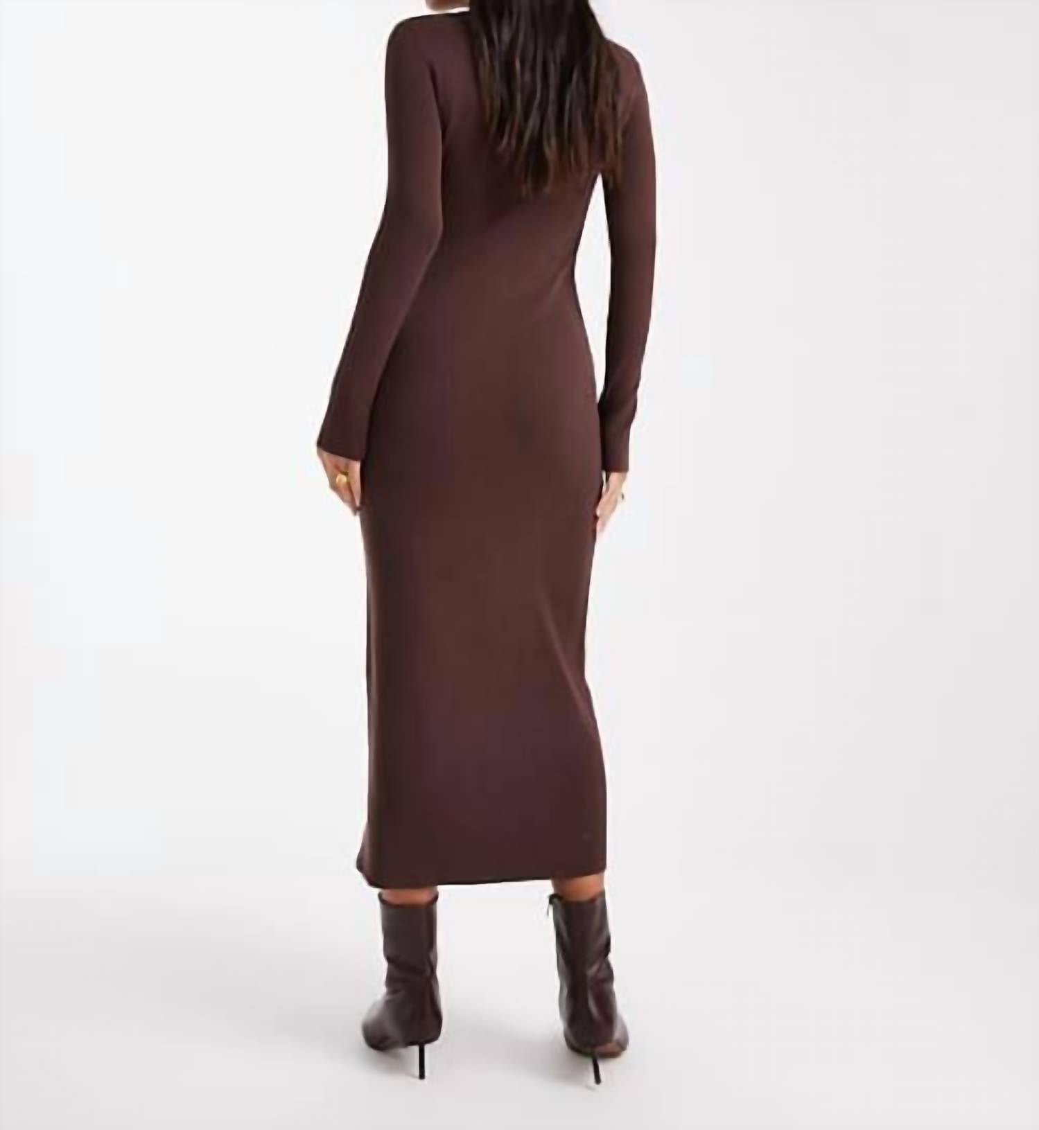 A maxi dress that is just as cute as it is comfortable. The Taye Maxi Dress by 4th & Reckless is a chic option for your fall wardrobe in a rich chocolate hue. Featuring long sleeves and crafted from textured nylon, this shift silhouette is designed with a polo collar. It stands out with gold 3D button details down the center and on the sleeve cuffs, adding a touch of sophistication. Closure is through a button, and it is suitable for machine wash, making this versatile piece perfect for Thanksgiving or any travel occasions with its boho chic appeal.
