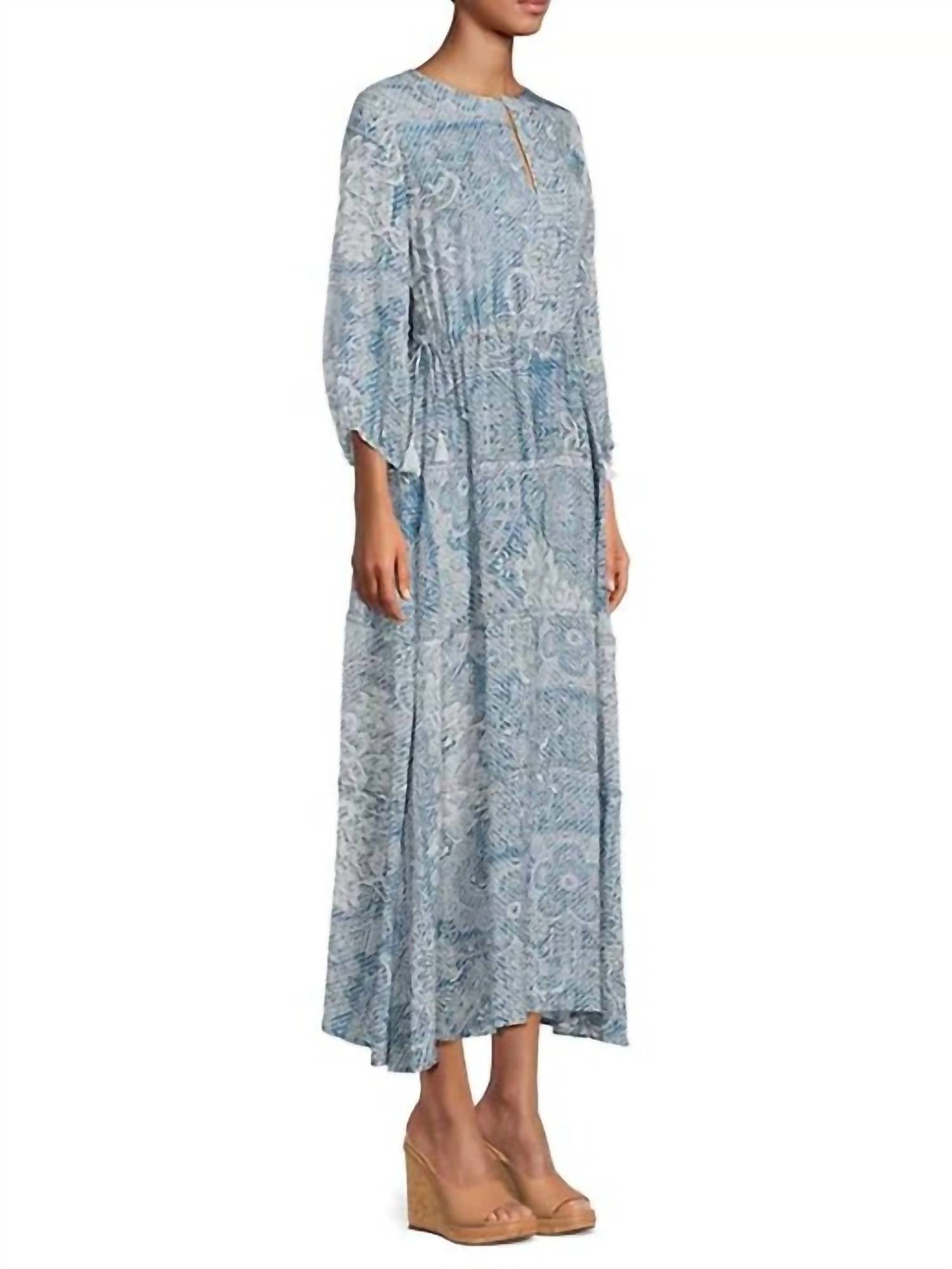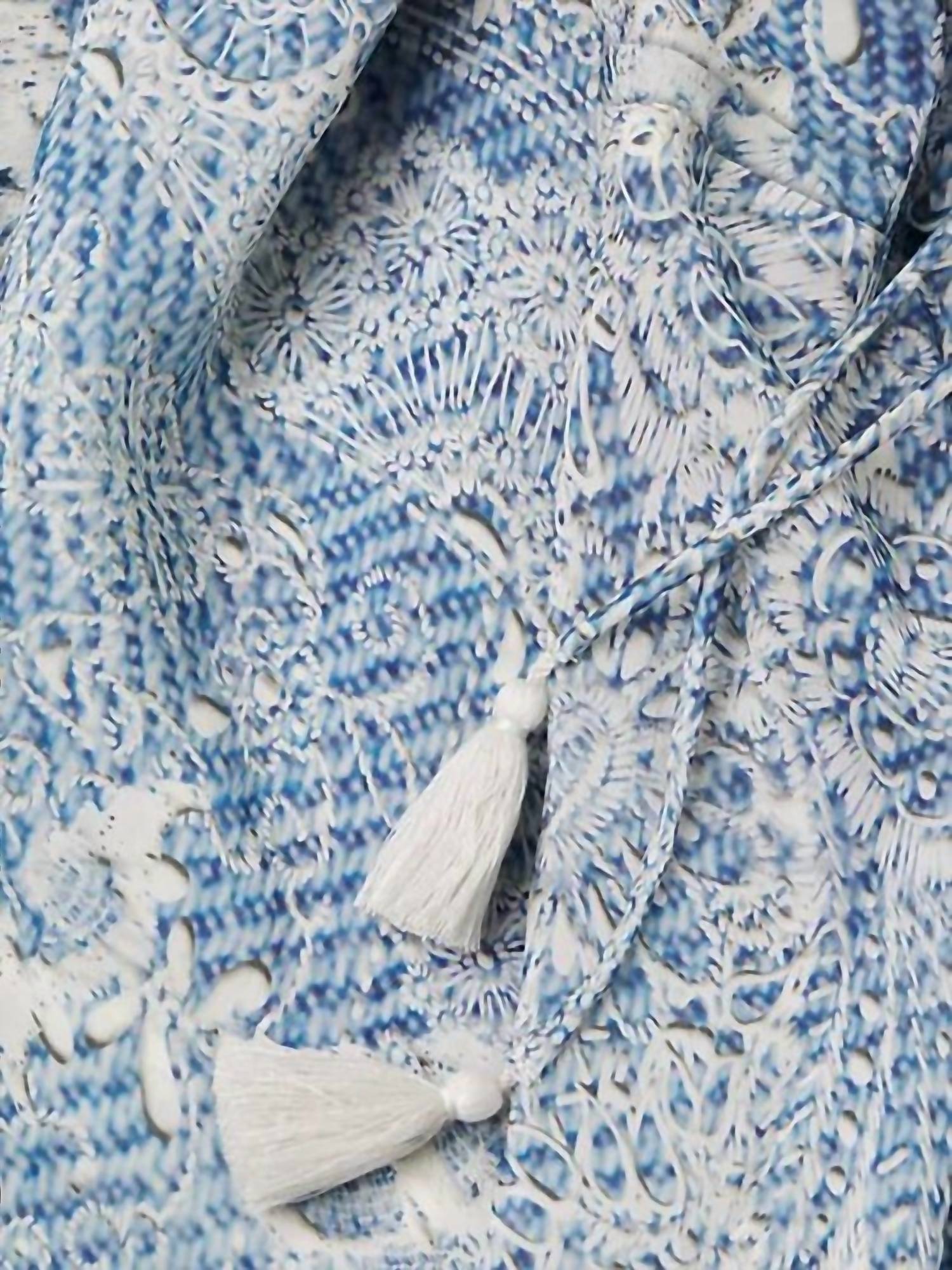 This Els tiered dress features a beautiful floral embroidery print and delicate ribbon trim. The dress is designed with a split neck, bracelet-length sleeves, and an elasticized waist for a comfortable fit. Its romantic, flowing silhouette makes it a must-have for any occasion.