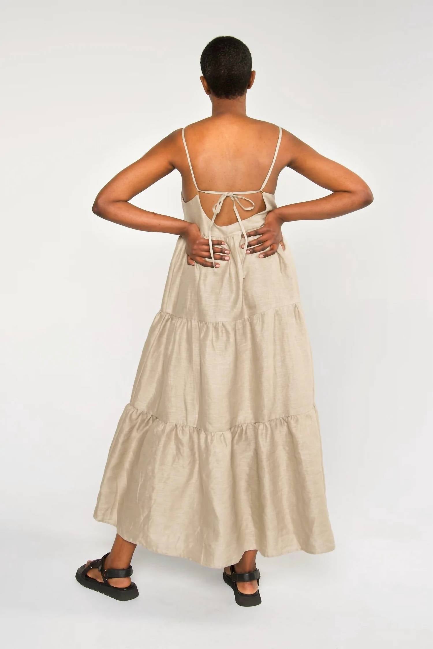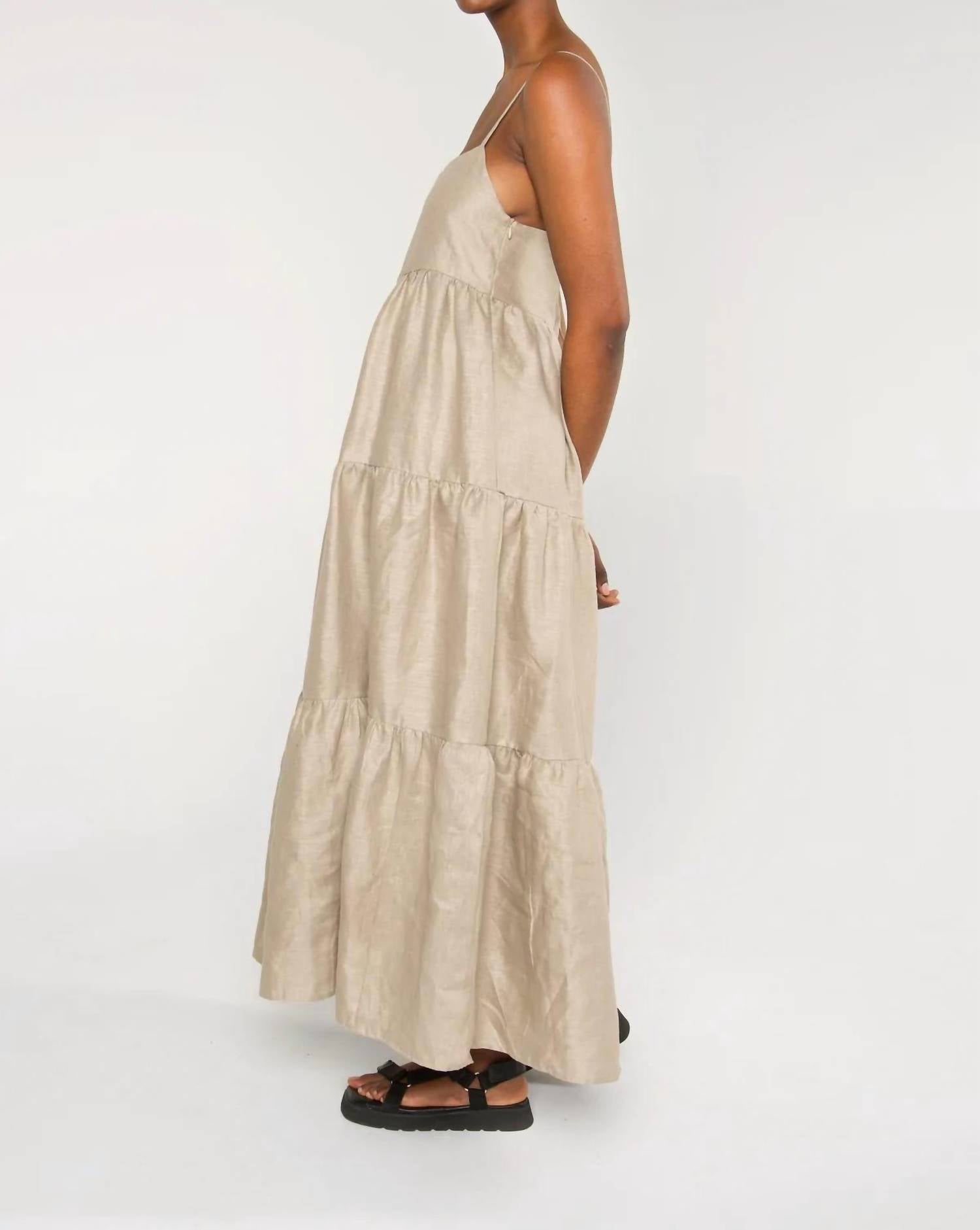 Style this maxi with your favorite statement necklace and sandals for the perfect look. Introducing the Pradegal Mila Tiered Maxi Dress in a textured clay hue, designed to exude minimalist elegance. This spring-ready, OEKO-TEX® certified dress features airy spaghetti straps and a sophisticated squareneck, flowing into a relaxed shift silhouette. Made from 100% Italian linen and crafted in Vancouver, it secures with an invisible side zipper. Care: Hand wash cold, line dry, and iron on high to medium heat or steam for best results. Model is 5'11" and wearing a size small.