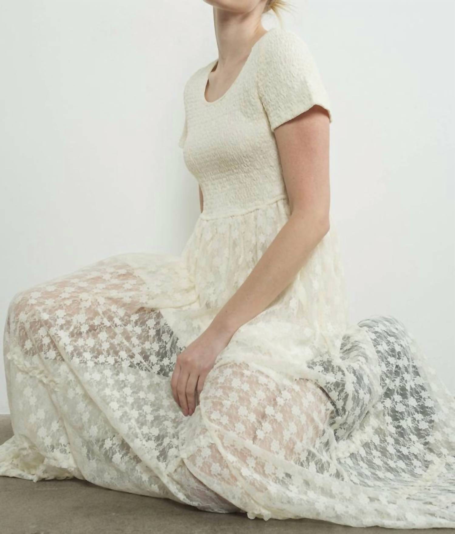 Who doesn't love a good maxi dress? This one you'll be reaching for season after season. Embrace vintage romance with the Heirloom Lace Maxi Dress by Aaron & Amber, a masterpiece in cream designed for special occasions. This short-sleeve dress features a figure-flattering empire waist with a softly smocked bodice and is crafted from an 85% nylon and 15% spandex blend, while the lining is 100% polyester. The flowing maxi-length silhouette offers an ethereal and dreamy effect, ideal for evening events. Closure: Pull on. Care: Hand wash.