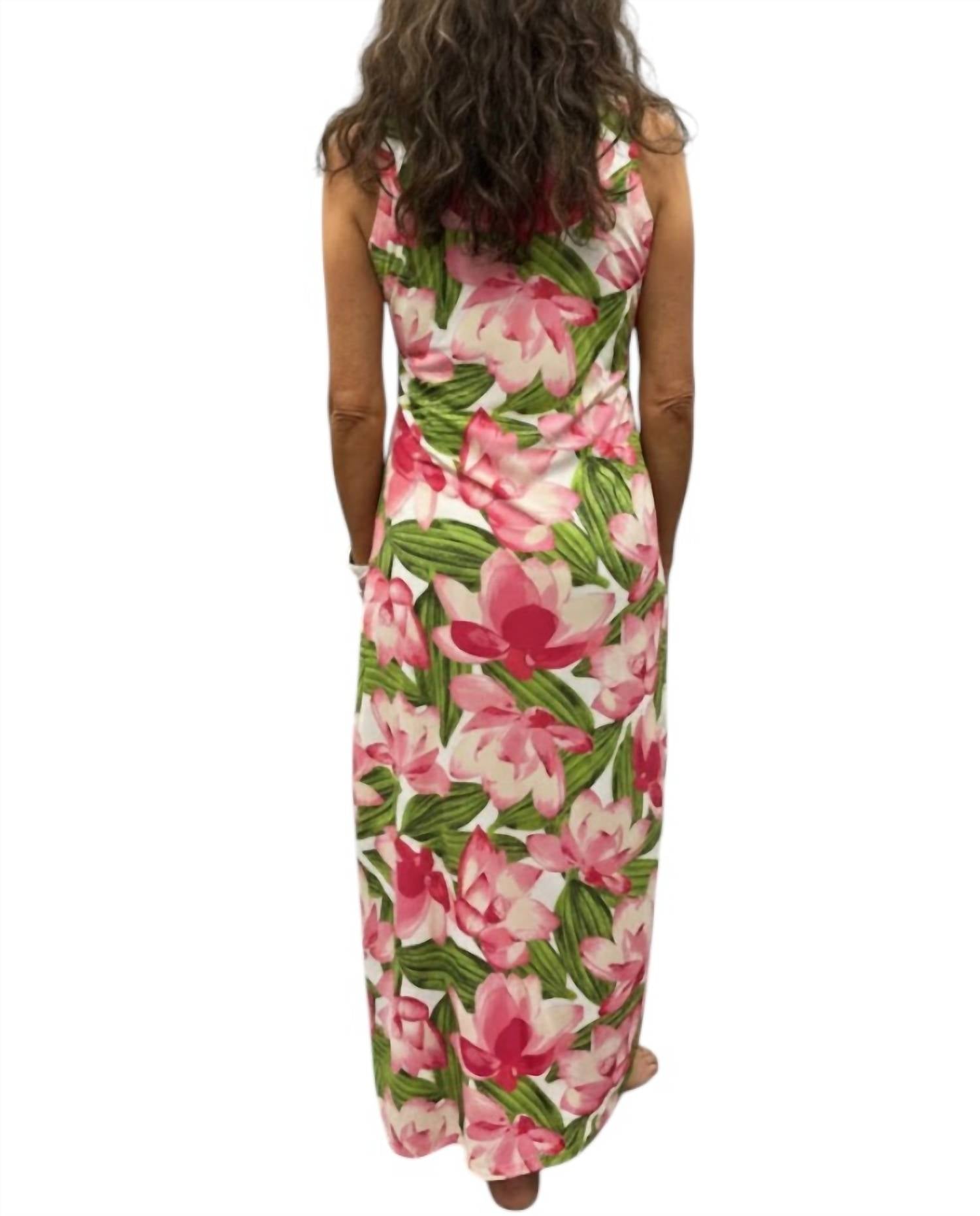 Style this maxi with your favorite statement necklace and sandals for the perfect look. Discover the Jacin Maxi Dress by Ana Clare, a stunning sleeveless piece in a vibrant pink floral design. This sheath silhouette features a flattering V-neck with ruffle details, a side leg slit for added movement, and offers UPF50 protection, perfect for holiday parties and Thanksgiving gatherings. Crafted from 85% Polyester and 15% Spandex, it promises both comfort and style. Care: Dry clean only.