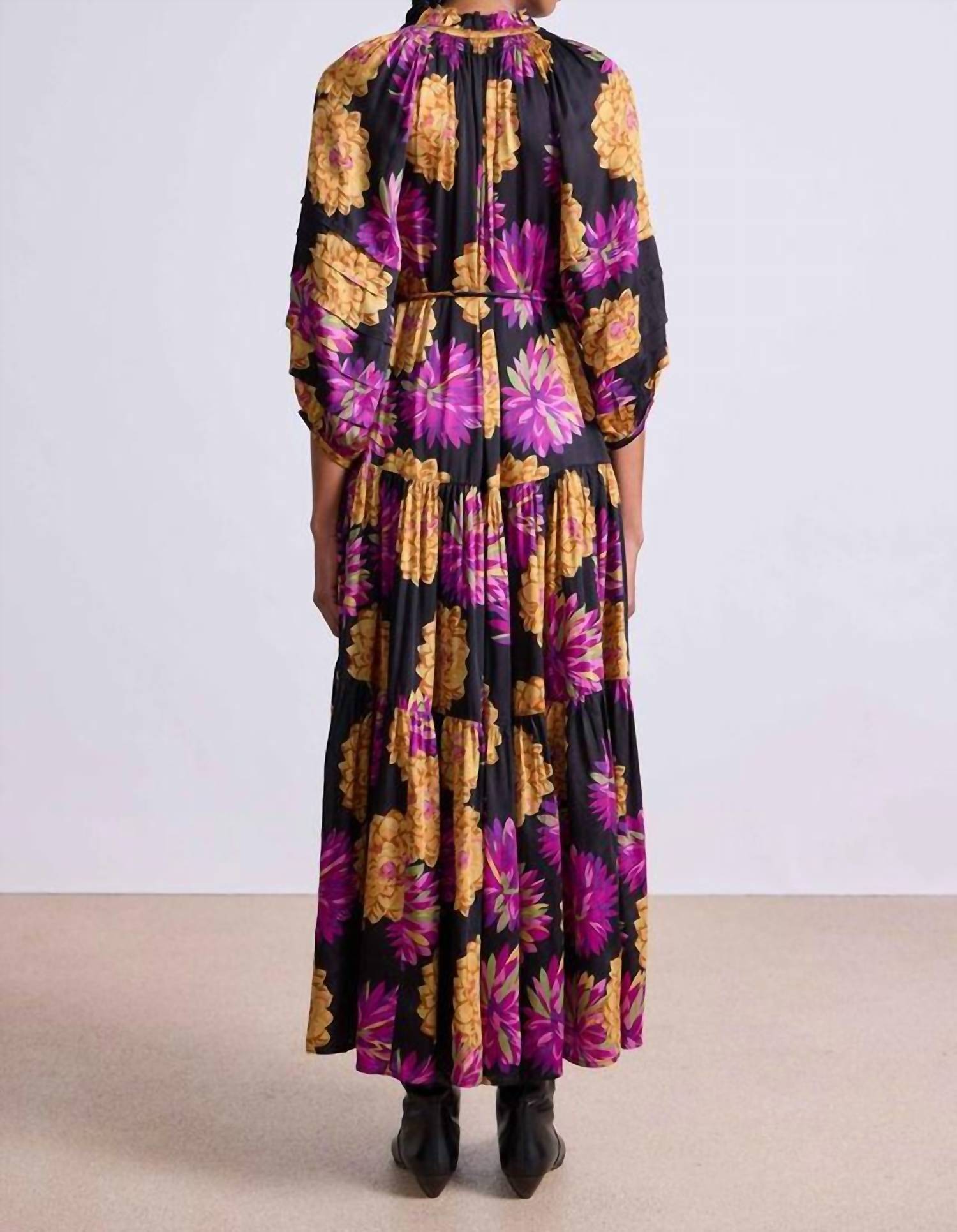 Style this maxi with your favorite statement necklace and sandals for the perfect look. Introducing the Noto Maxi Dress by APIECE APART, an elegant addition to your spring wardrobe in a charming Pom Floral print. This kaftan silhouette features elbow-length sleeves, crafted from 100% regenerative cotton, and designed with a flowy tiered skirt, complete with a center front slit and a front button placket. Made in India, it includes a removable self-tie belt for versatile styling. Care for this maxi dress by hand washing cold and laying flat to dry. Length: 53" from shoulder, model is 5'10" and wearing a size small.