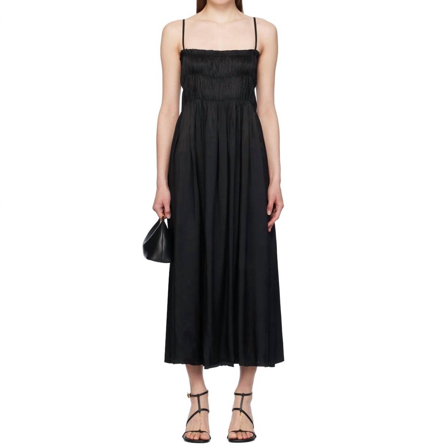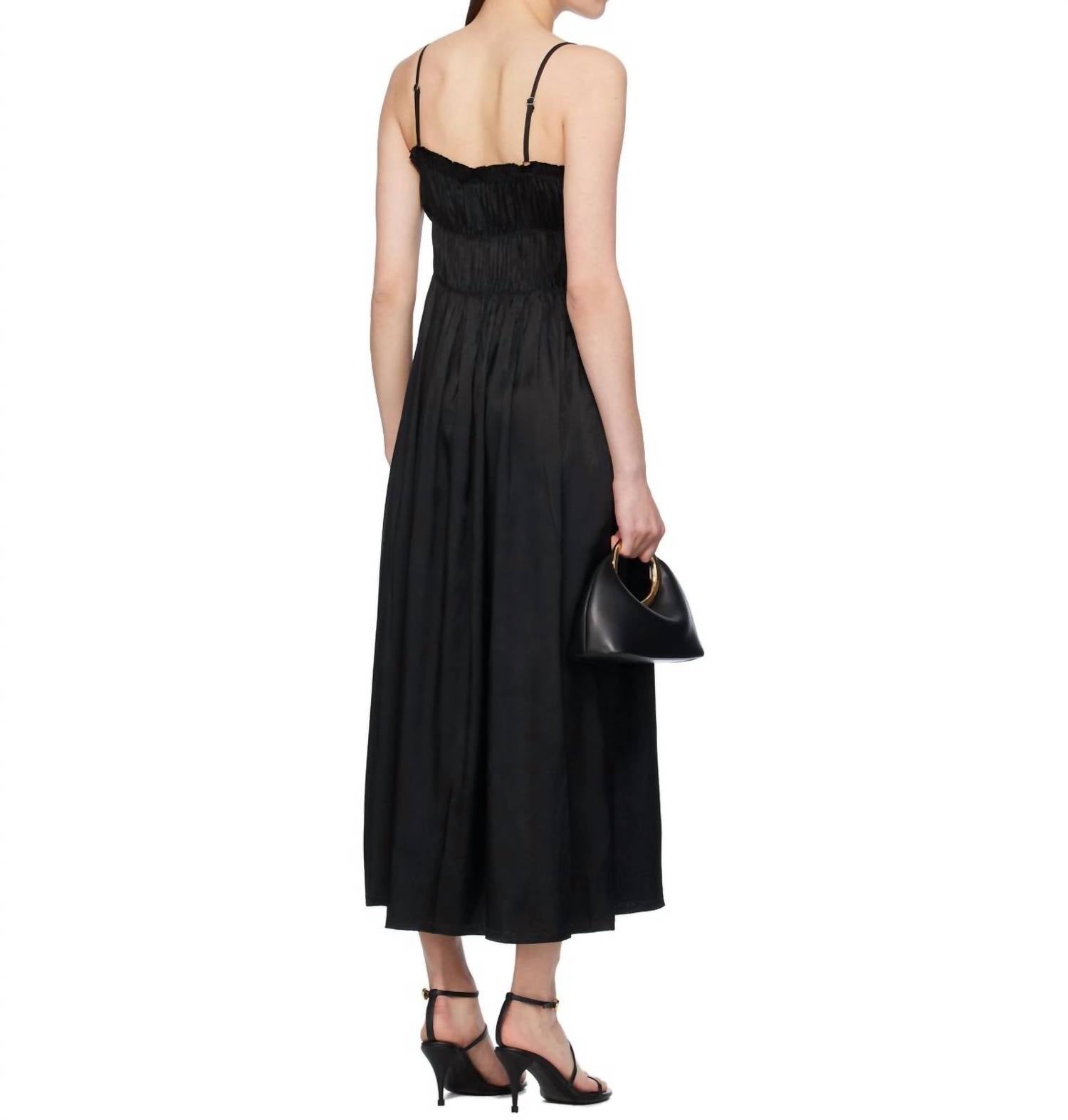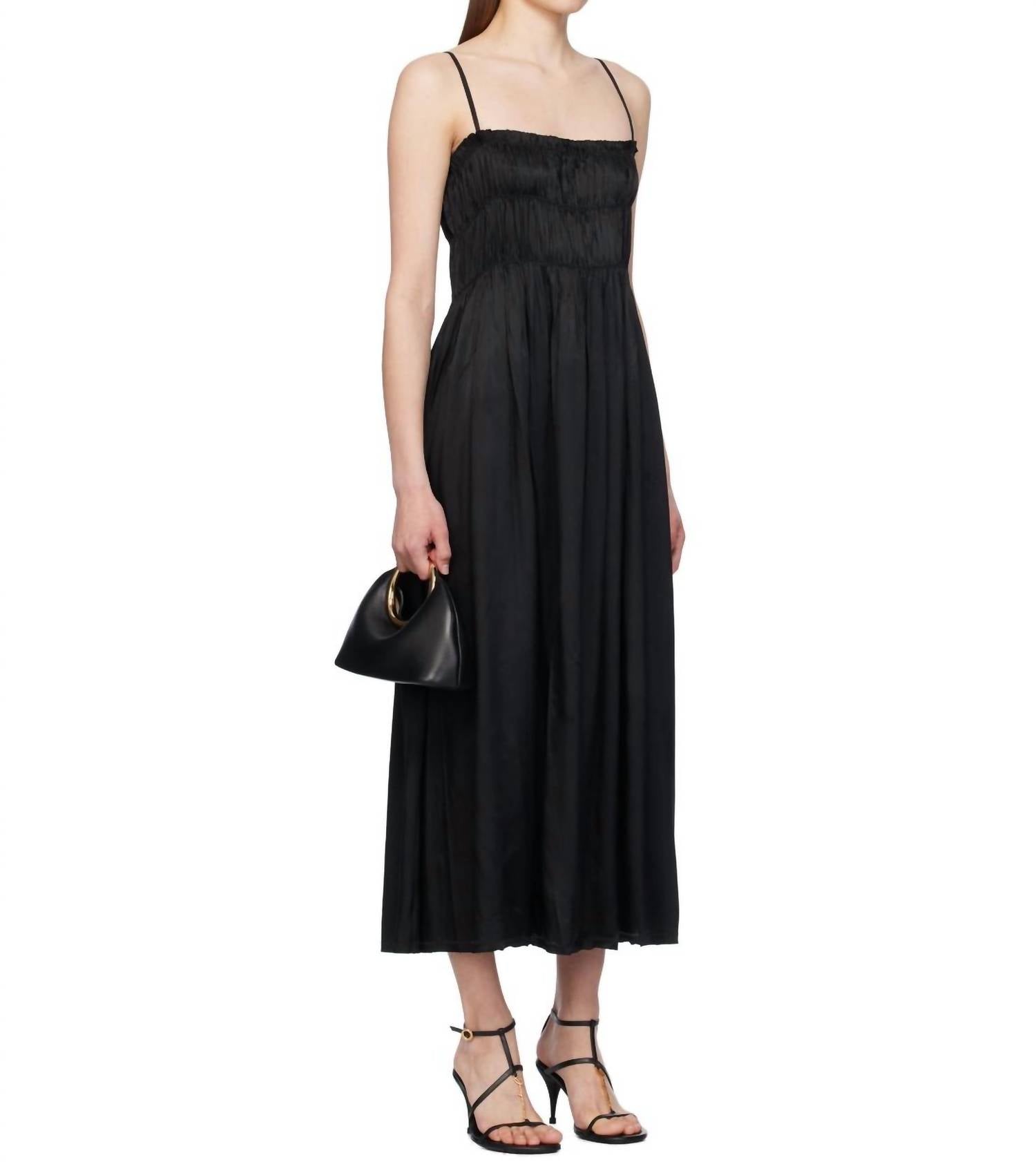 A maxi dress that is just as cute as it is comfortable. The Dali Maxi Shift Dress by BEC + BRIDGE is a sophisticated choice for any dinner party. It features adjustable elasticized spaghetti straps and a minimalist shift silhouette, providing effortless elegance with its satin twill composition. Crafted from 100% viscose, this solid black dress offers a raw edge at the straight neckline and hem for a unique touch. Designed with a pull-on closure, it combines comfort with style, all while embracing a chic, minimalist trend.