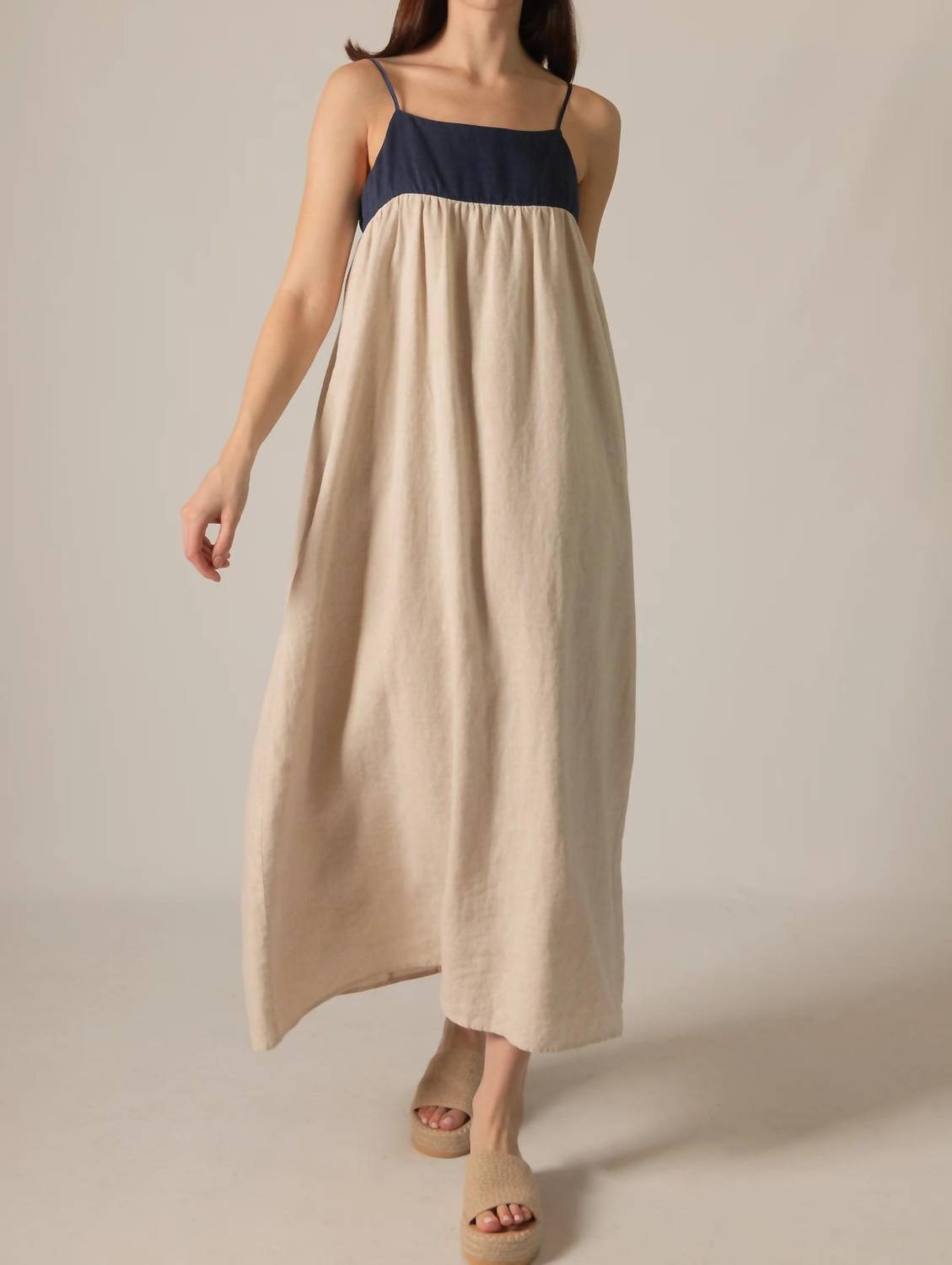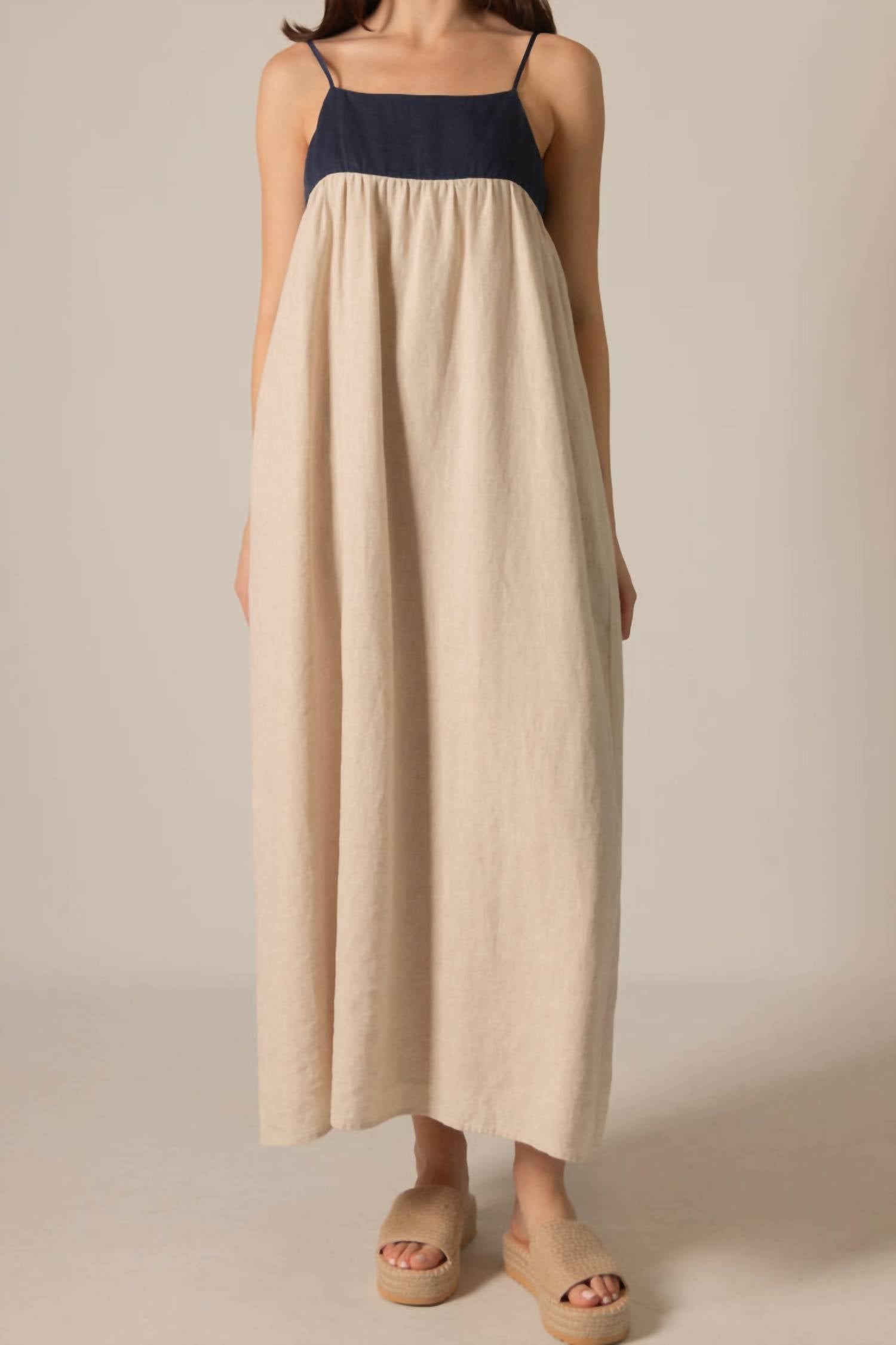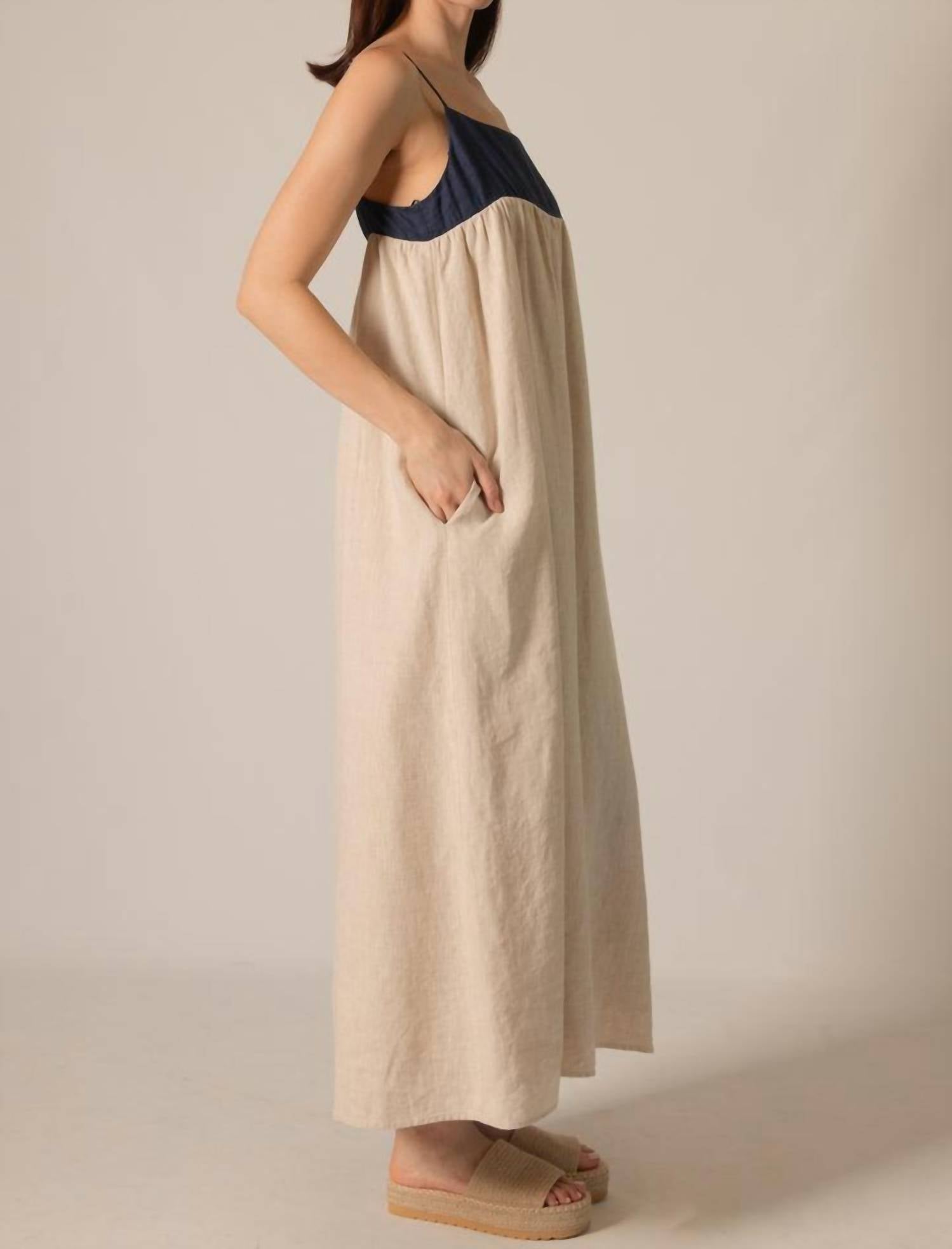Who doesn't love a good maxi dress? This one you'll be reaching for season after season. Elevate your vacation wardrobe with the Willa Linen Maxi Dress by Before You, designed in a chic Natural Navy hue. This elegant piece features spaghetti straps and a squareneck for a minimalist, summer-ready silhouette. Made from linen, it includes practical elements like hidden side pockets and a shift dress design. Closure is a zip closure. For care, simply machine wash and line dry for longevity.