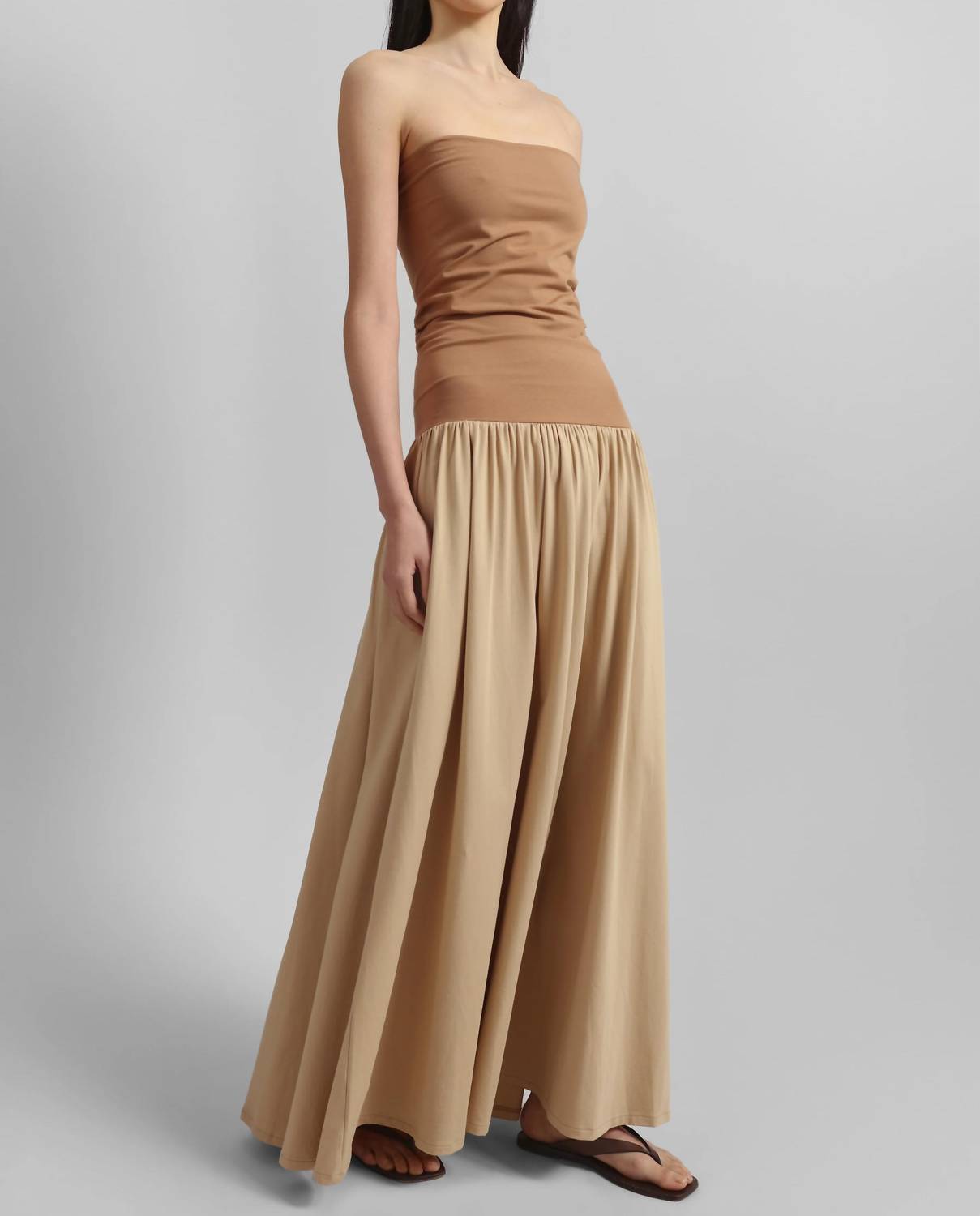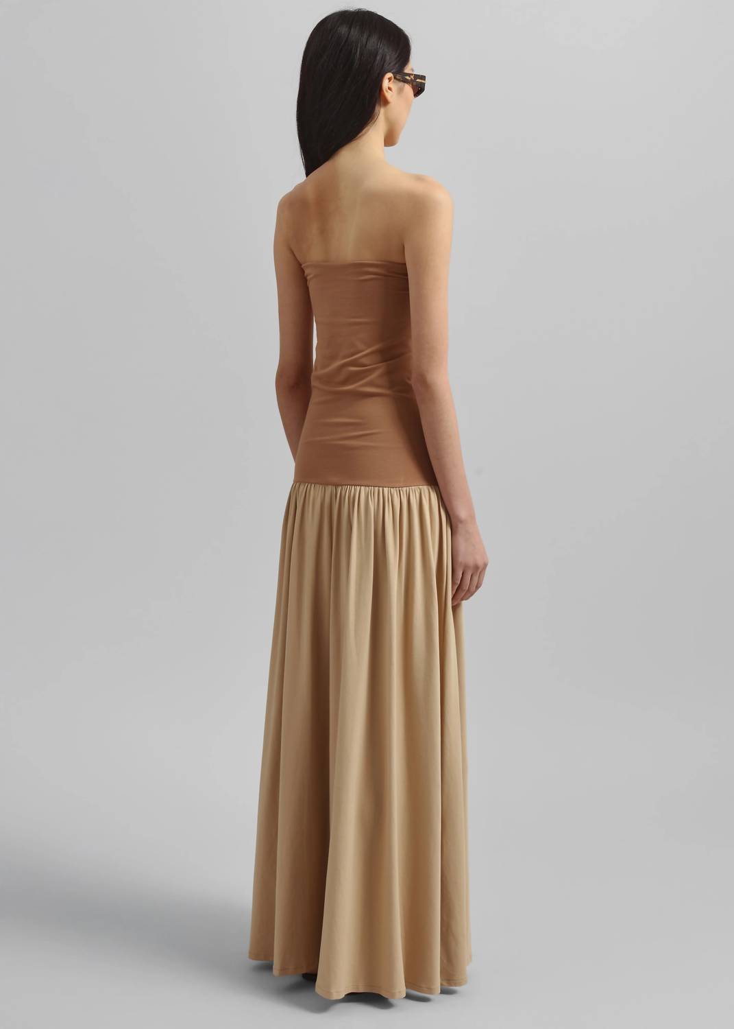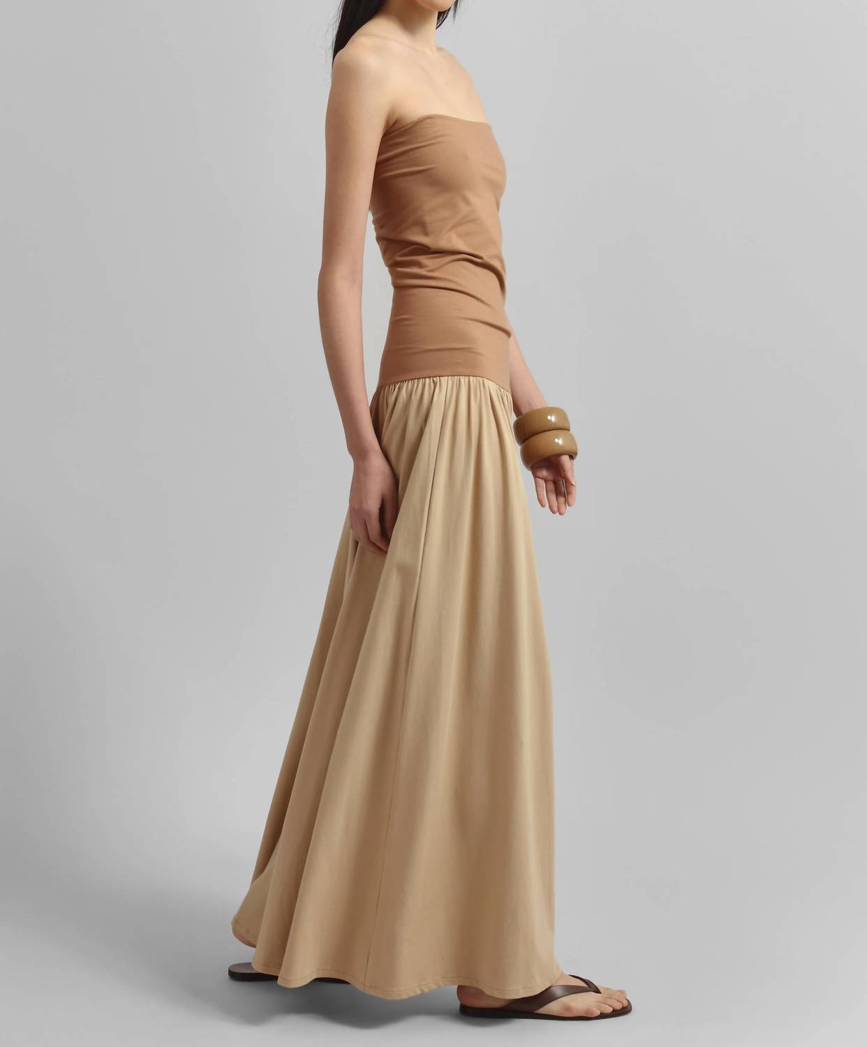 Who doesn't love a good maxi dress? This one you'll be reaching for season after season. Introducing the Marciella Maxi Dress by By Malene Birger in elegant Cornstalk, a must-have piece for any fashion-forward wardrobe. Crafted from a cotton blend, this stunning piece features a strapless design and a fit-and-flare silhouette, making it perfect for both festive occasions and weekdays. The dress is expertly crafted with an elastic upper and a pull-on closure for easy and comfortable wear. Care instructions include machine washing and laying flat to dry, ensuring longevity with minimal effort.