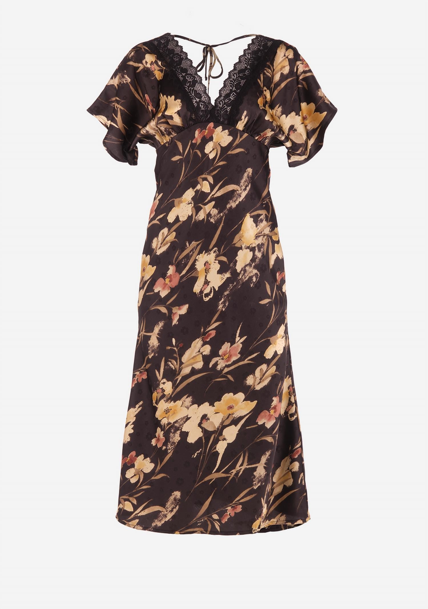 Style this maxi with your favorite statement necklace and sandals for the perfect look. Introducing the Women's Maelys Floral Maxi Dress by By Together, a chic boho-style piece with playful short sleeves, designed to enhance any wardrobe. This elegant wrap-style dress features a deep V-neck adorned with lace trim, beautifully complementing its lively multi-color floral pattern. Crafted from 98% Polyester and 2% Spandex, the dress offers a comfortable fit with a convenient back zipper closure and a sleek polyester lining. Care is easy with machine wash instructions, making it ideal for sunny gatherings or casual outings.