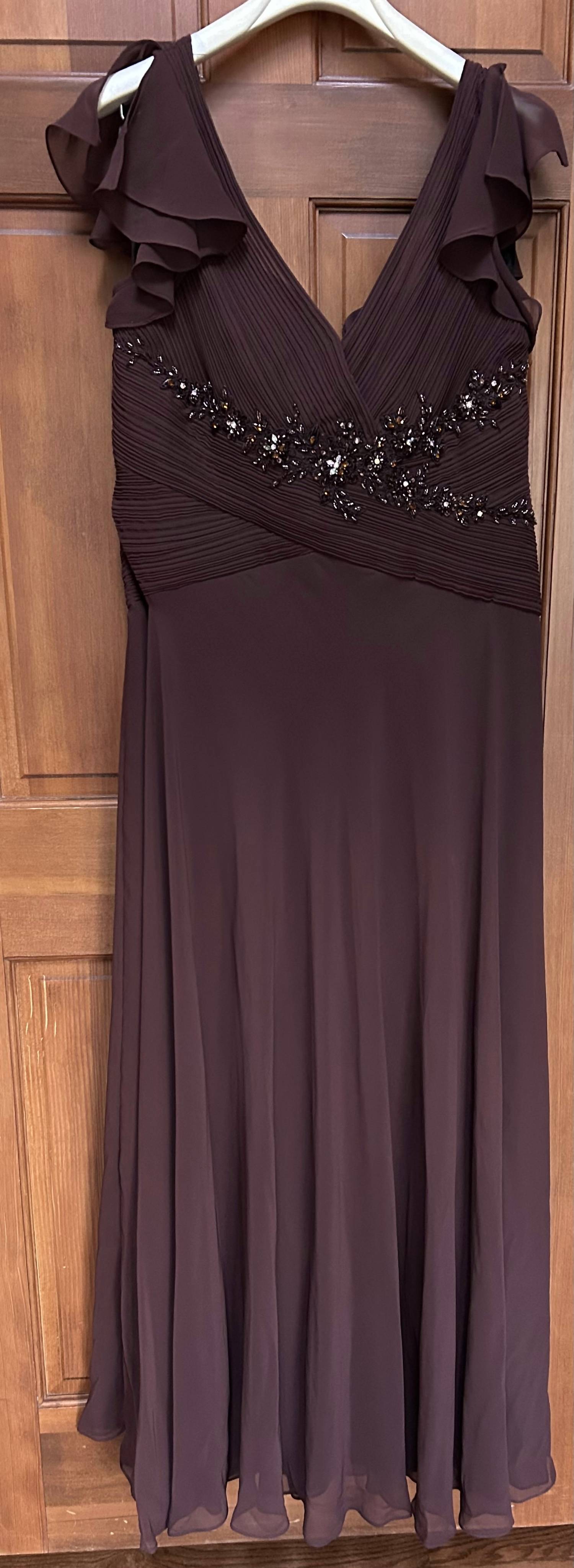 Style this maxi with your favorite statement necklace and sandals for the perfect look. Elevate your wedding ensemble with the Cameron Blake Women's Beaded Long Dress in a sophisticated cocoa hue. This plus-size maxi dress features textured detailing and a graceful V-neckline, ideal for quiet luxury and special occasions like Thanksgiving. Designed with cap sleeves, it provides elegance without compromising comfort. Closure: Zip closure.
