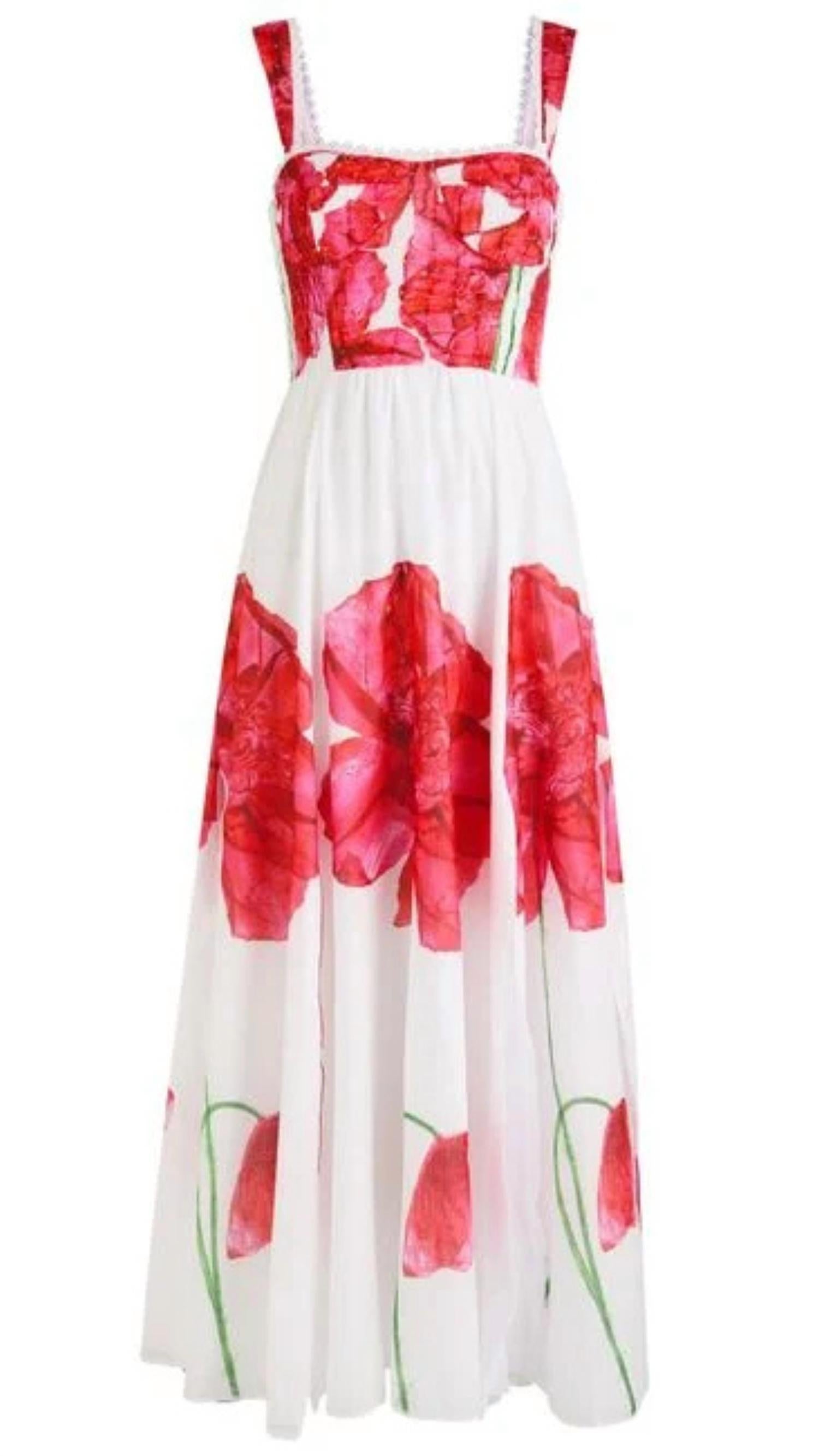 Style this maxi with your favorite statement necklace and sandals for the perfect look. Introducing the Women's Crissy Long Dress by Charo Ruiz, a Boho Chic slip dress perfect for your summer vacation. This sleeveless maxi dress features a squareneck and is crafted from 90% cotton and 10% polyester in a charming White Blossom floral pattern. With a simple pull-on closure, it offers ease and comfort, ideal for warm sunny days. Please note that specific care instructions are not provided; handle with care for longevity.