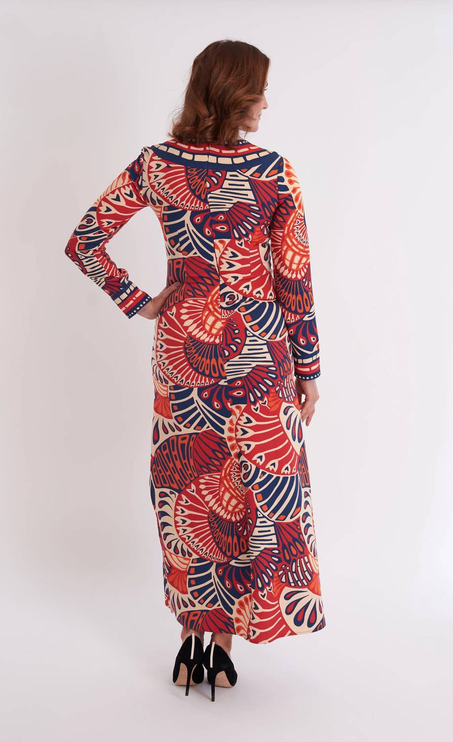 Who doesn't love a good maxi dress? This one you'll be reaching for season after season. Introducing the Arianne Maxi Dress by CK BRADLEY, a captivating choice for your spring wardrobe in Paddle Sienna. This boho chic, sheath silhouette dress embraces a lively patterned design with its elegant crewneck and long sleeves. Closure: Zip closure. Perfect for an evening event, the dress effortlessly combines sophistication with a touch of playful charm.
