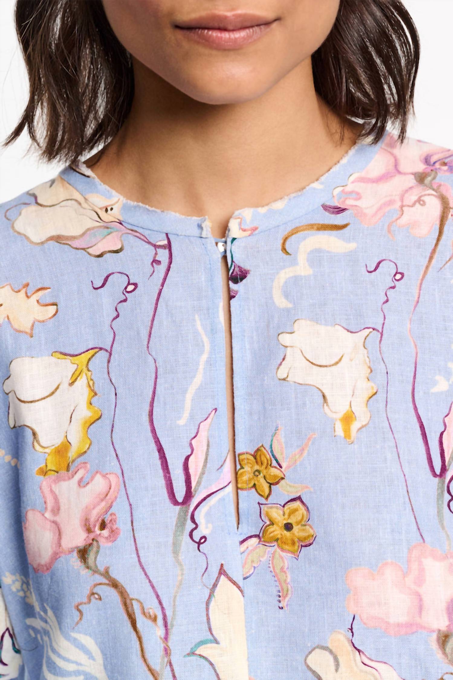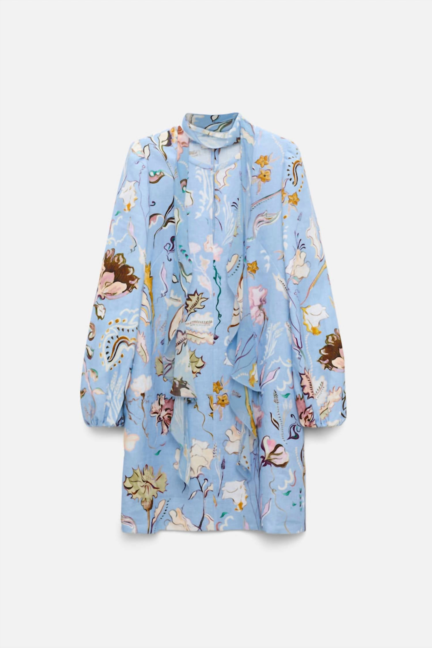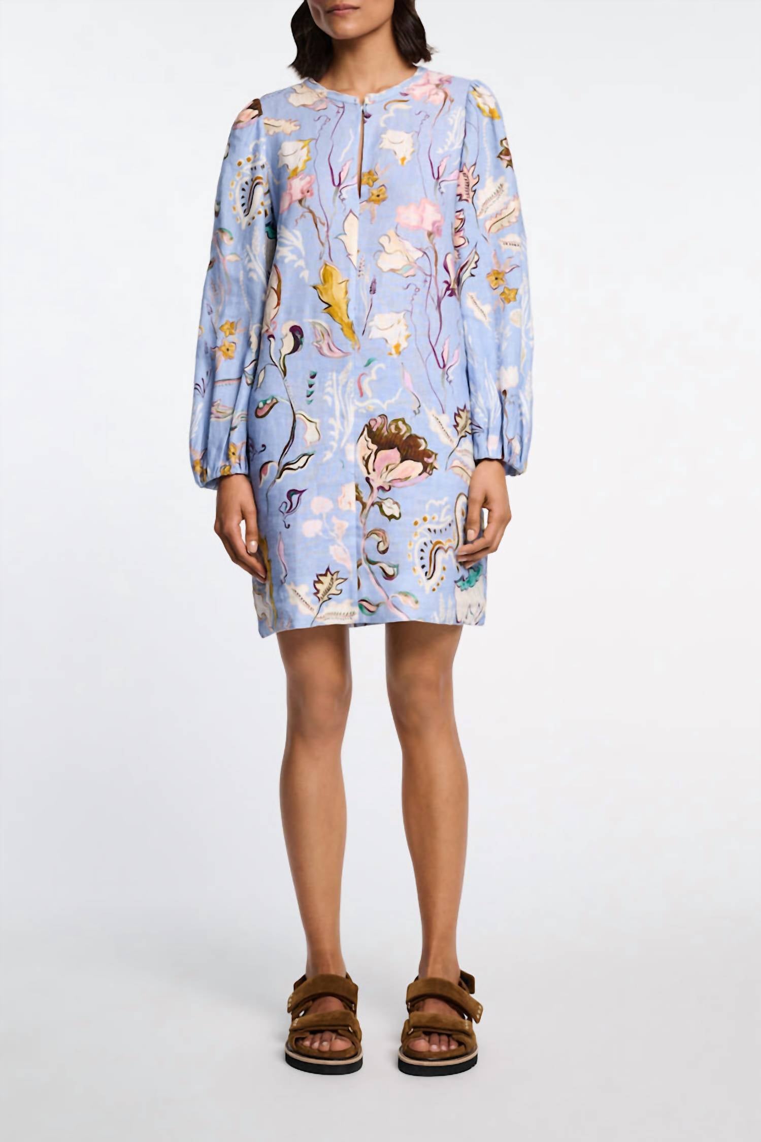 Style this maxi with your favorite statement necklace and sandals for the perfect look. Step out in style with the Floral Power Mini Dress by Dorothee Schumacher, perfect for any spring occasion. Crafted from 100% linen, this thigh-grazing shift dress features voluminous long sleeves and a chic crewneck, complemented by a silk georgette flounce scarf for added elegance. Designed with a pull-on closure, it boasts a vivid non-solid pattern in a beautiful blue hue. Gentle on care, simply hand wash and line dry to maintain its fresh look.