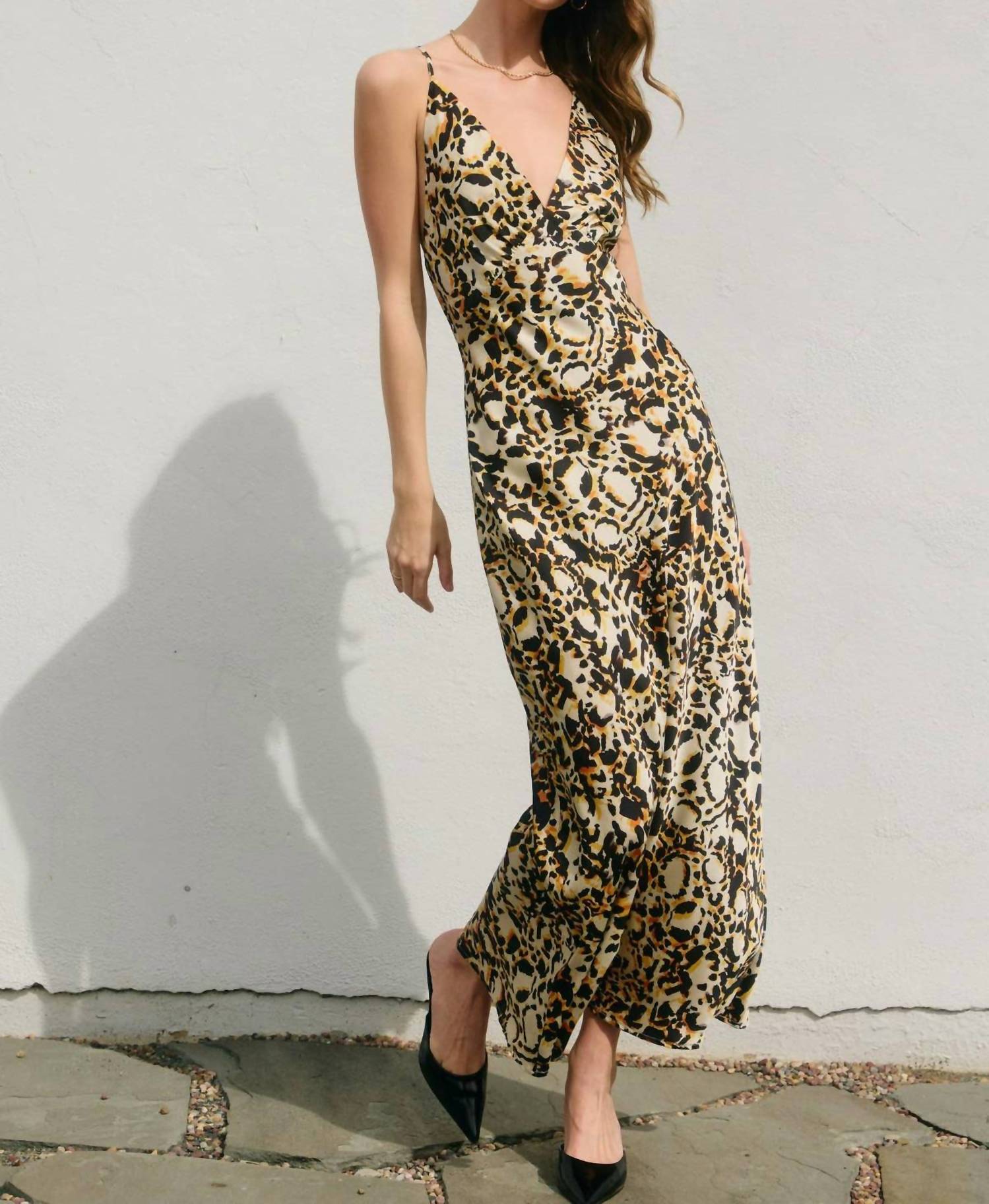 A maxi dress that is just as cute as it is comfortable. Introducing the Abstract Animal Cross Back Maxi Dress by DRESS FORUM, a statement piece perfect for dinner parties and maximalist fashion enthusiasts. This sleeveless dress in a striking Champagne Cheetah animal print features a plunging V-neckline and an open back with a low V shape. The adjustable shoulder straps tie at the back, complemented by a hidden center back zipper on the skirt. Crafted from 96% Polyester and 4% Spandex, with a 100% Polyester lining, it is easy to care for with machine wash instructions.