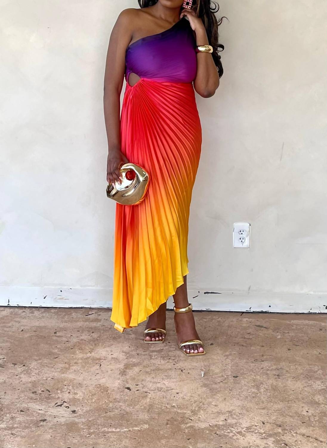 Dress Forum - Sunset Ombre Pleated Asymmetrical Maxi Dress
