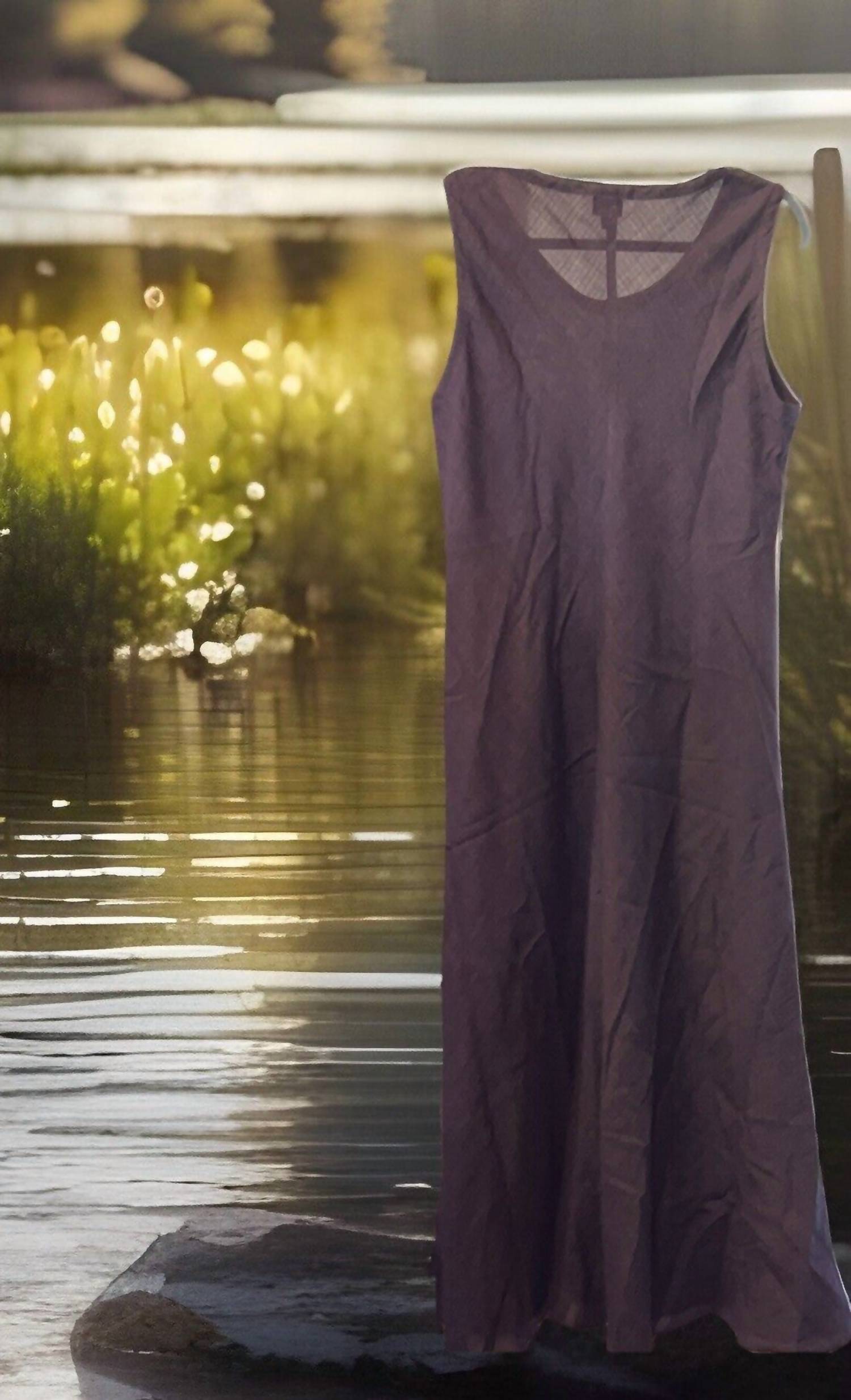 Who doesn't love a good maxi dress? This one you'll be reaching for season after season. Introducing the Eileen Fisher Maxi Dress, a versatile piece crafted from high-quality linen for a sophisticated touch. This chocolate brown sheath silhouette features a sleeveless design and scoop neck, making it a perfect choice for any occasion, from a dinner party to spring gatherings. The dress's long, flowing style is ideal for petite figures and offers a flattering fit in size large. Closure is a convenient pull-on, and although washing and drying instructions are not specified, this piece is sure to become a wardrobe favorite.