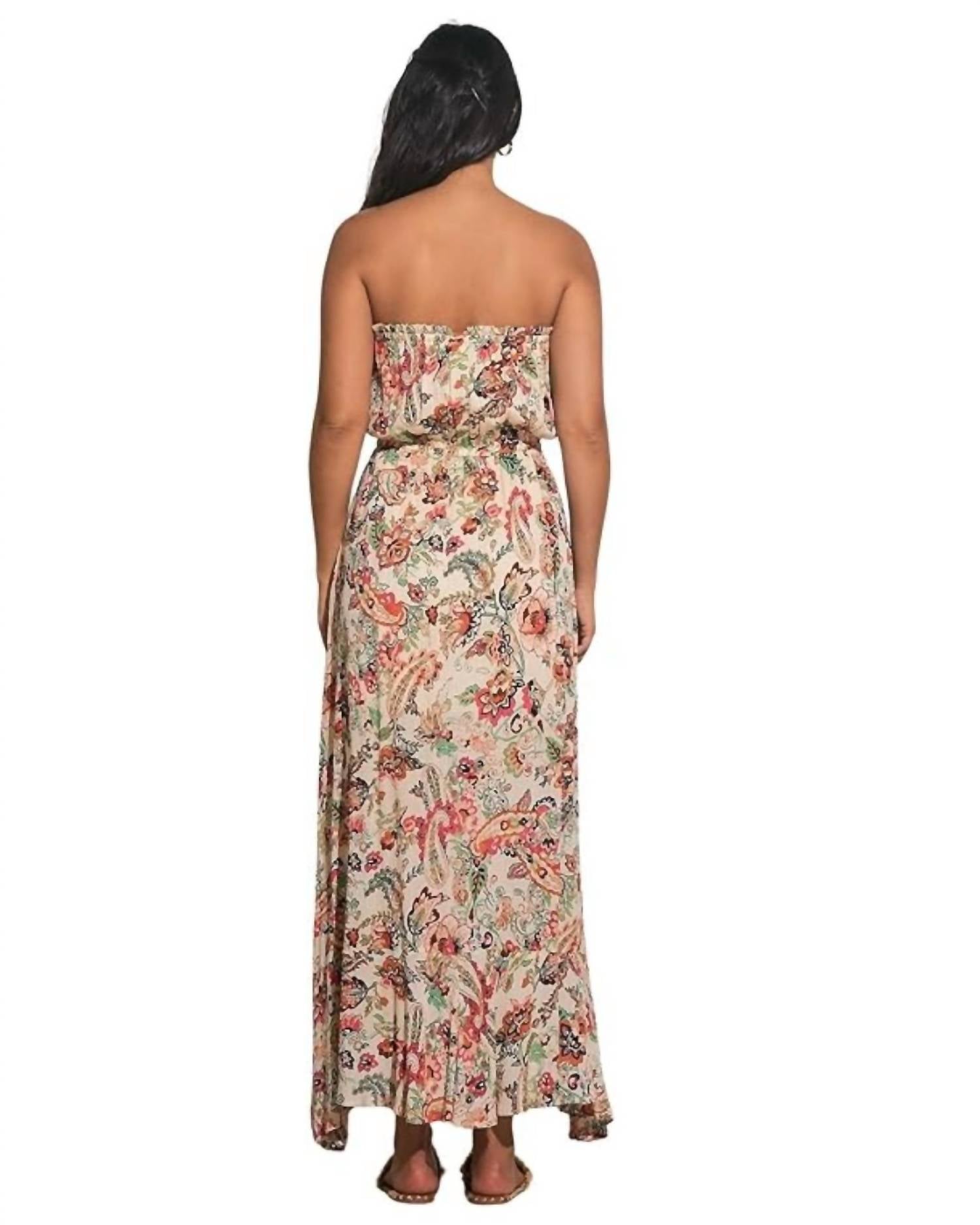 Style this maxi with your favorite statement necklace and sandals for the perfect look. Embrace the effortless elegance of the Strapless Floral Pink Maxi Dress by ELAN, perfect for a sun-soaked beach day. This sleeveless silhouette features a trendy boho chic design with a flattering tie waist adorned with tassels and a leg-baring front slit. Crafted from 100% Rayon, it includes a decorative button front and an elastic top for a secure fit. Imported with care instructions indicating to hand wash and line dry, this dress ensures a comfortable, breezy wear for your summer adventures.