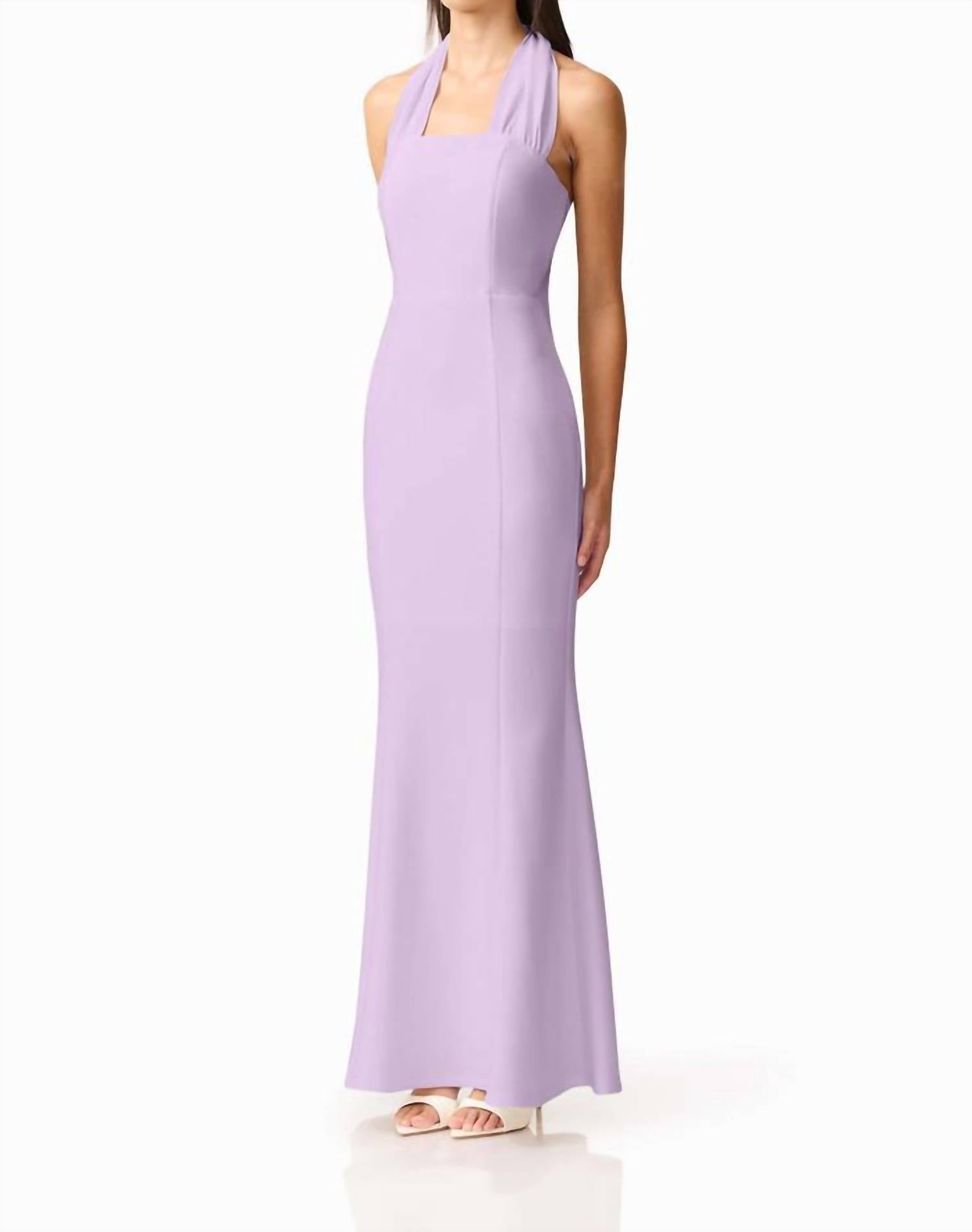 Style this maxi with your favorite statement necklace and sandals for the perfect look. Elevate your elegance with the Mira Halter Gown by ELLIATT, a stunning sleeveless dress crafted from high-quality Bella stretch crepe. This mermaid silhouette features a floor-length hem and a sash halter neckline, elegantly gathered for visual interest. Composition boasts 95% Polyester and 5% Spandex for self, with lining made of 92% Polyester and 8% Spandex, ensuring a flattering fit and comfort. Closure: Centre back invisible zipper. Perfect for weddings and minimalist spring occasions.