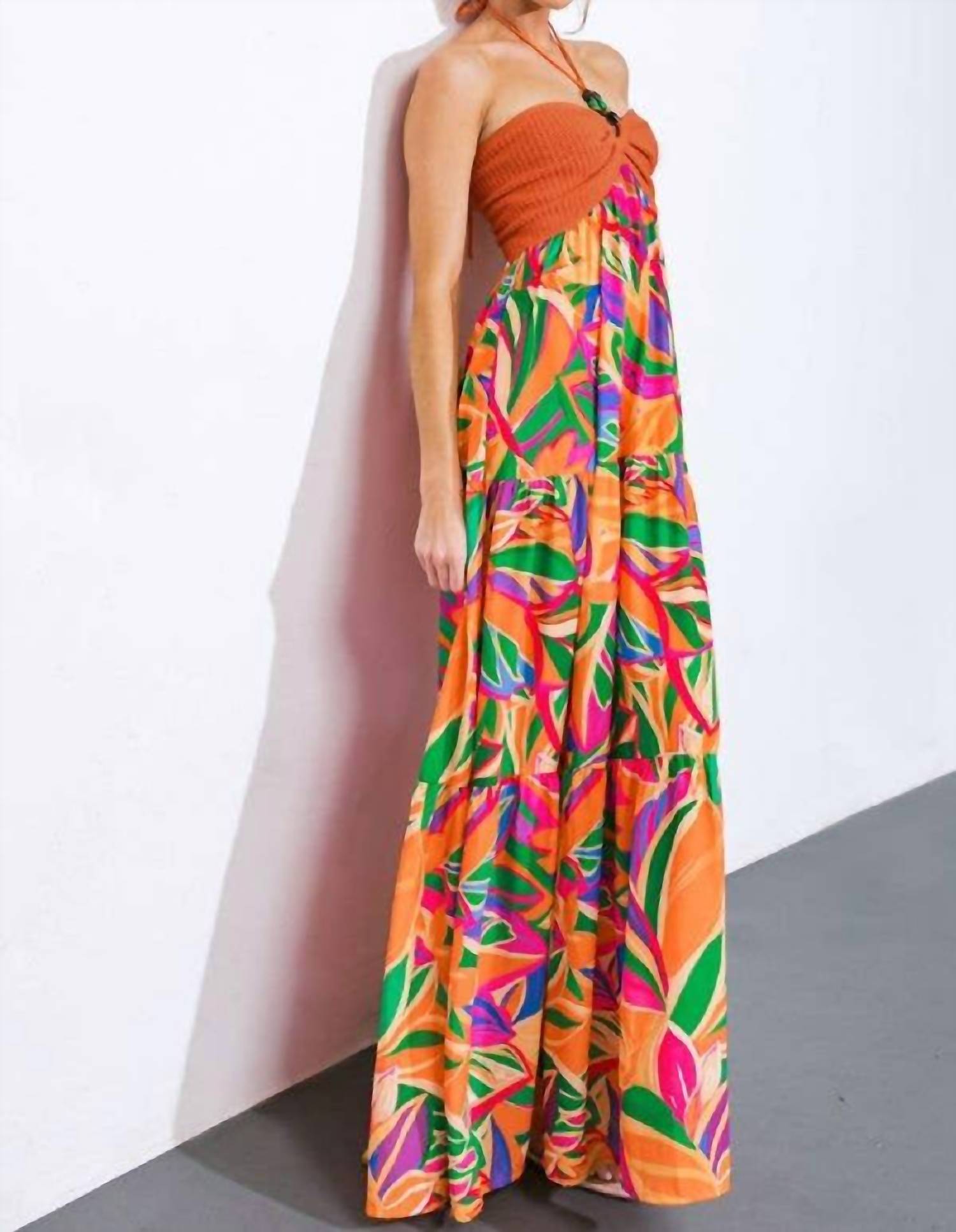 Flying Tomato - Sunset Getaway Crochet & Print Maxi Dress