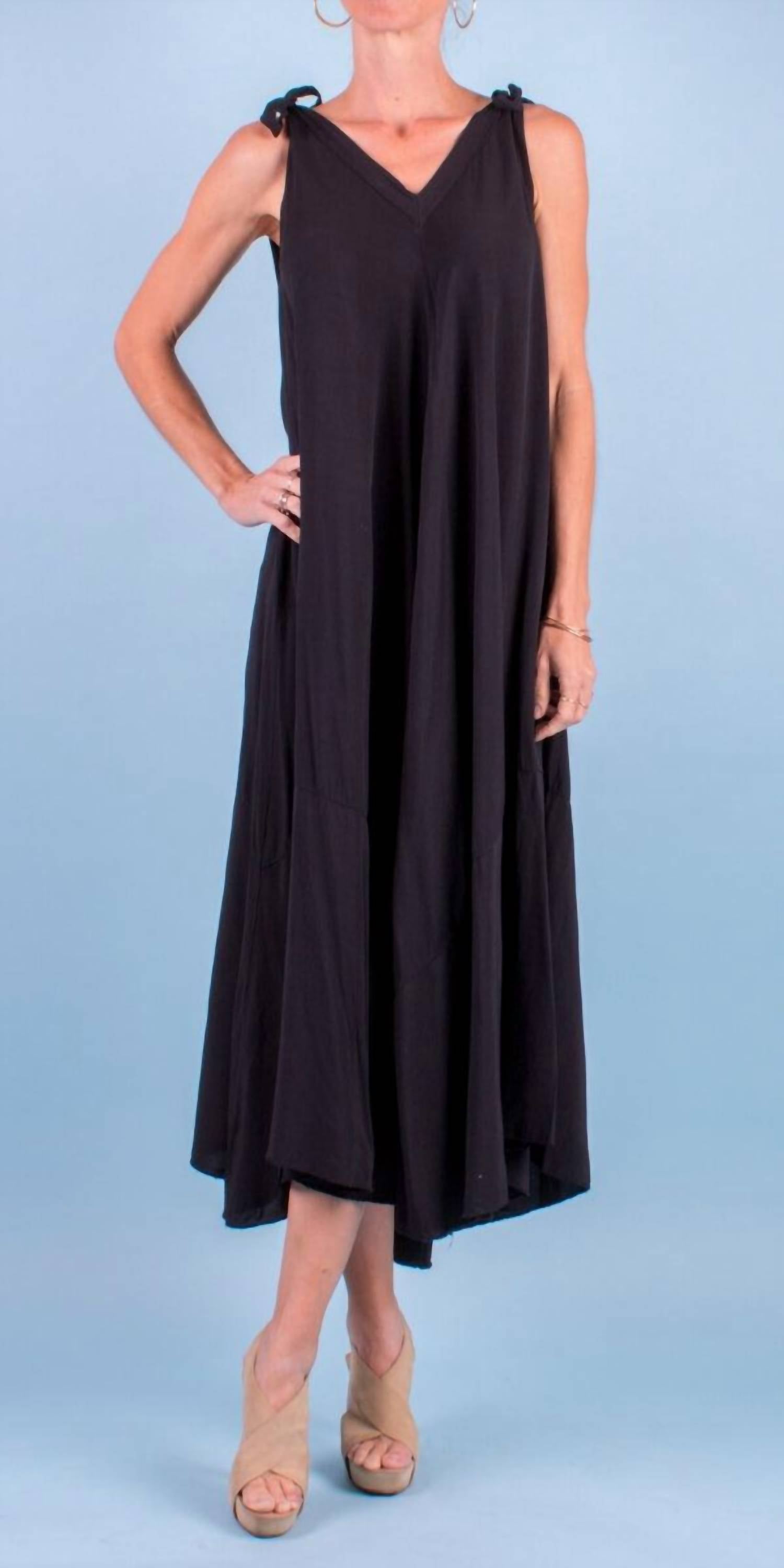 Who doesn't love a good maxi dress? This one you'll be reaching for season after season. Experience the elegance of the GIGI MODA Da Amico Maxi Dress, perfect for vacation vibes and summer days. This women’s dress features spaghetti straps with adjustable ties at the shoulders and a sophisticated double V-neckline. Crafted from 100% Viscose, it boasts a breezy maxi length and a solid black pattern, ideal for effortless style. Made in Italy, the dress is designed in a one-size-fits-most silhouette suitable for various body types. Care is as easy as machine washing. Model height is 5'8".