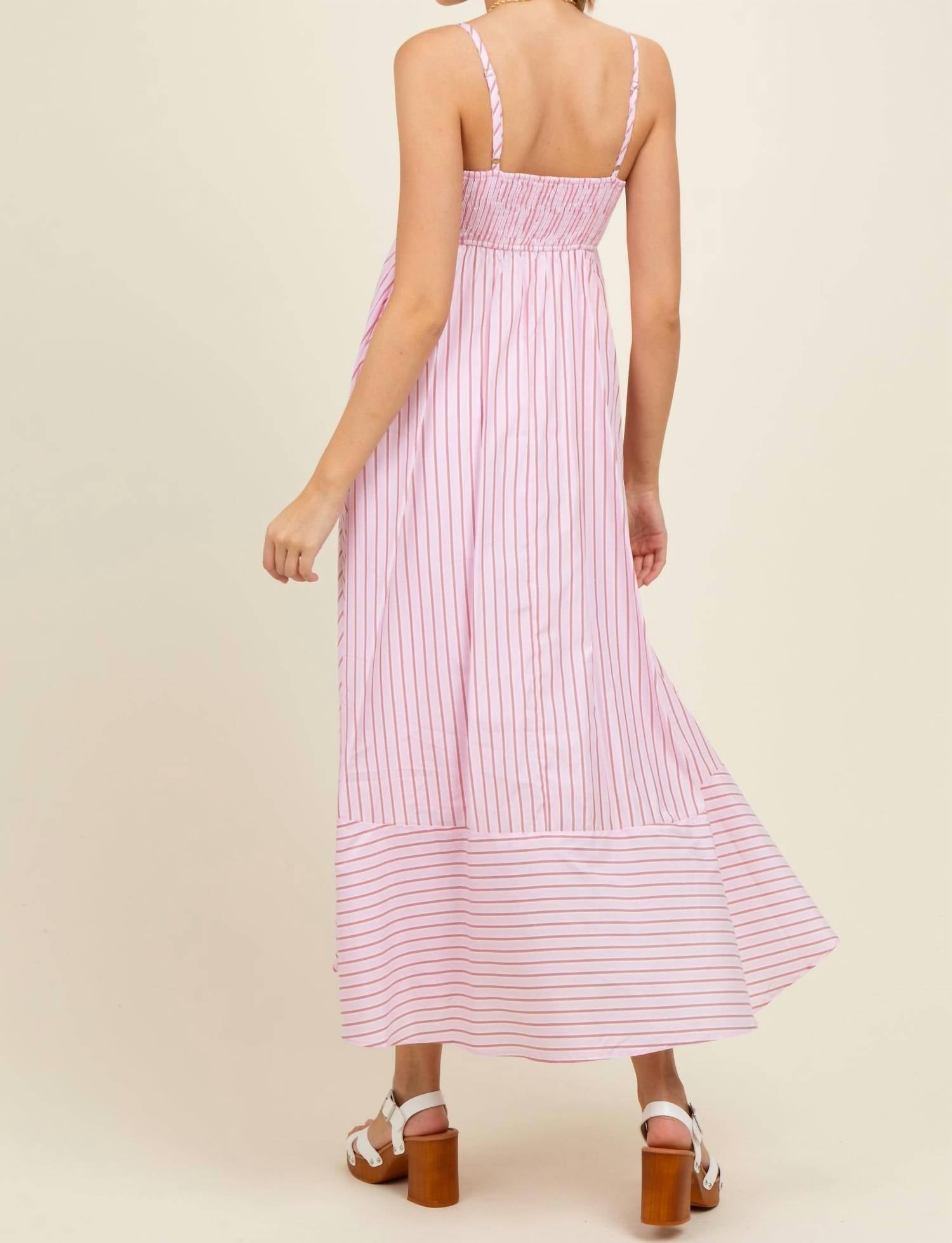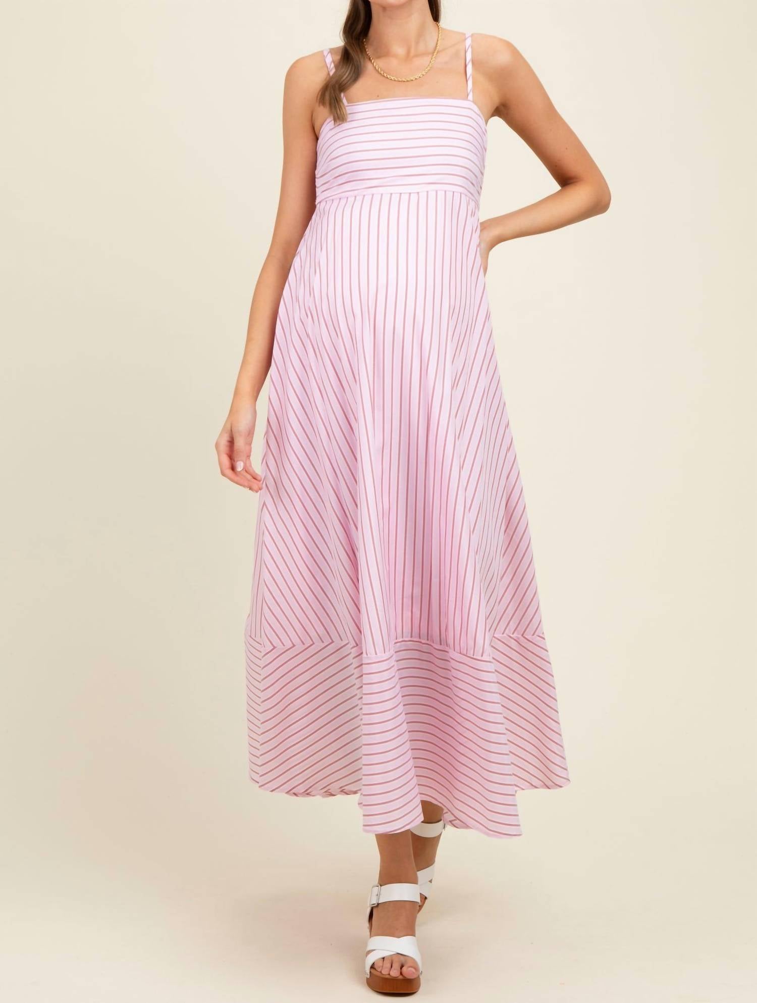 Who doesn't love a good maxi dress? This one you'll be reaching for season after season. Embrace summer with the Spaghetti Strap Stripe Maxi Dress by Hem & Thread, a boho-chic essential in a refreshing pink hue. Featuring adjustable spaghetti straps and a flattering squareneck, this A-line dress offers effortless style and comfort. Crafted from a 55% polyester and 45% cotton blend, it presents a soft and breathable feel. Closure: Pull-on. Care: Machine wash. Ideal for vacations or festive occasions like the 4th of July.