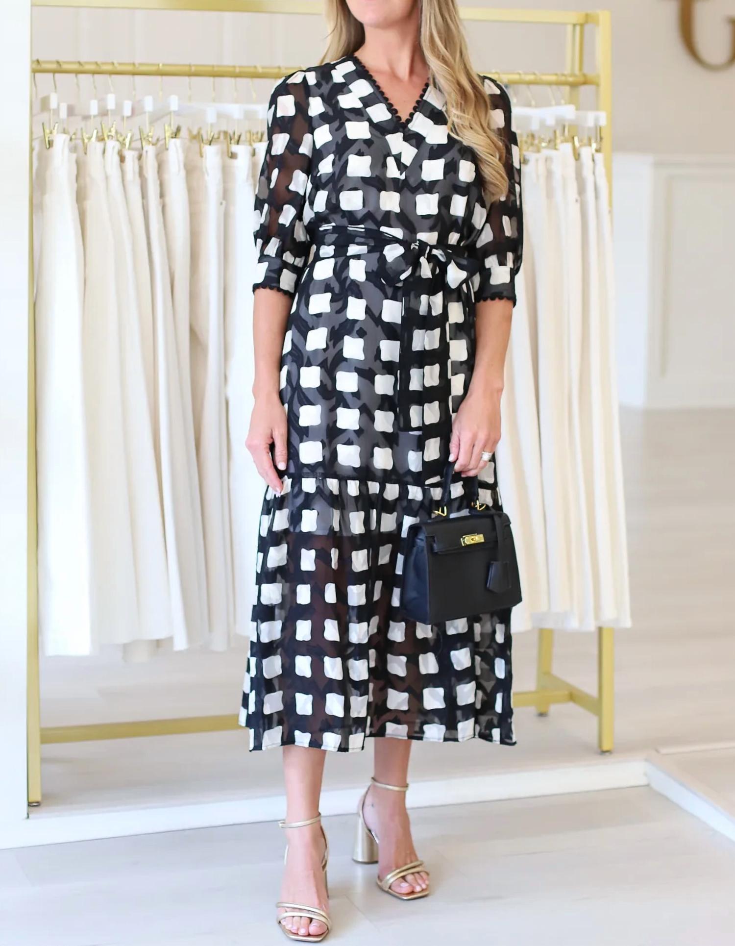 Style this maxi with your favorite statement necklace and sandals for the perfect look. The Trimmed V-neck Maxi Dress by Jade is a stylish vacation essential, showcased in a vibrant Dahlia Border floral pattern. With a three-quarter sleeve and striped cuff, this A-line silhouette provides a trendy 90s fashion vibe. Crafted from breathable cotton, it features a lined design and a pull-on closure for easy wear. Care for this summer-ready garment is simple with machine wash instructions.
