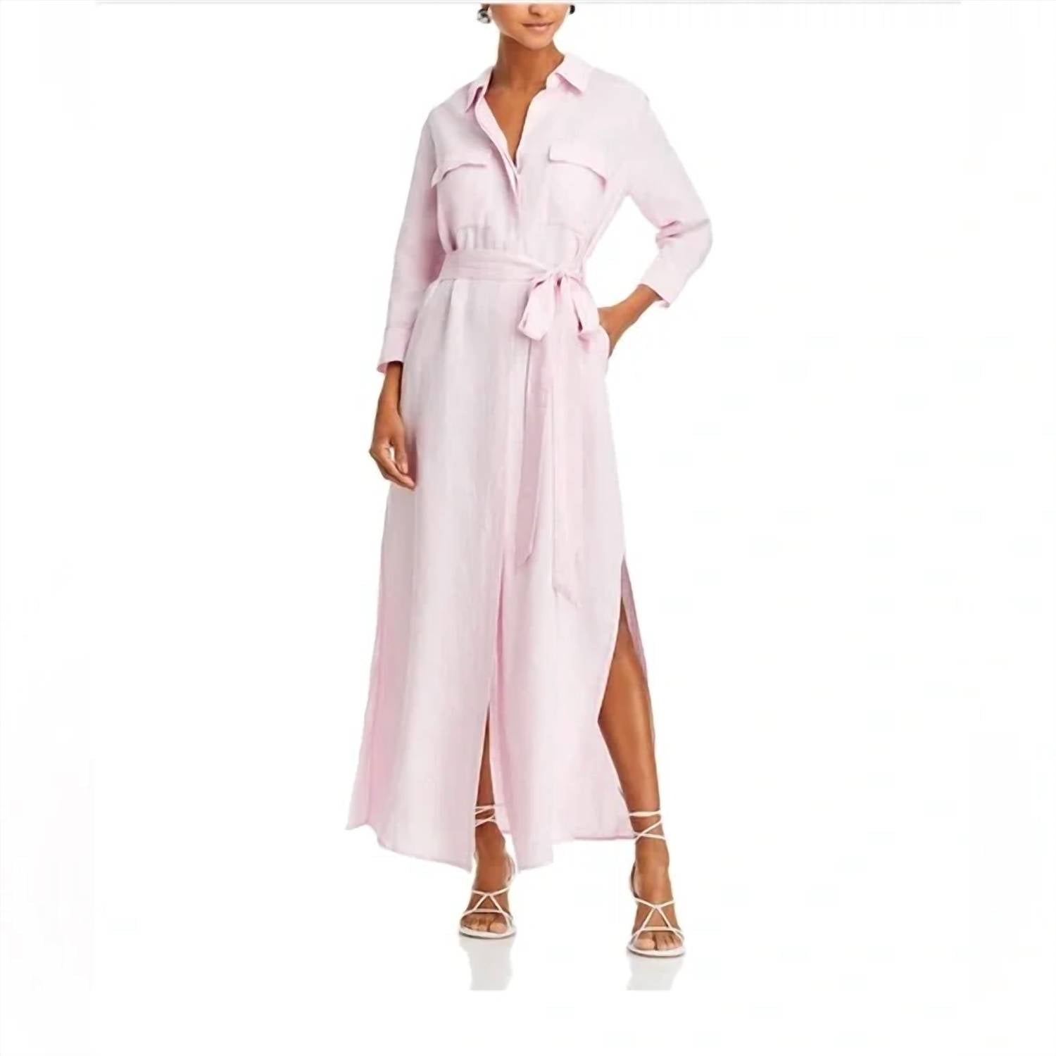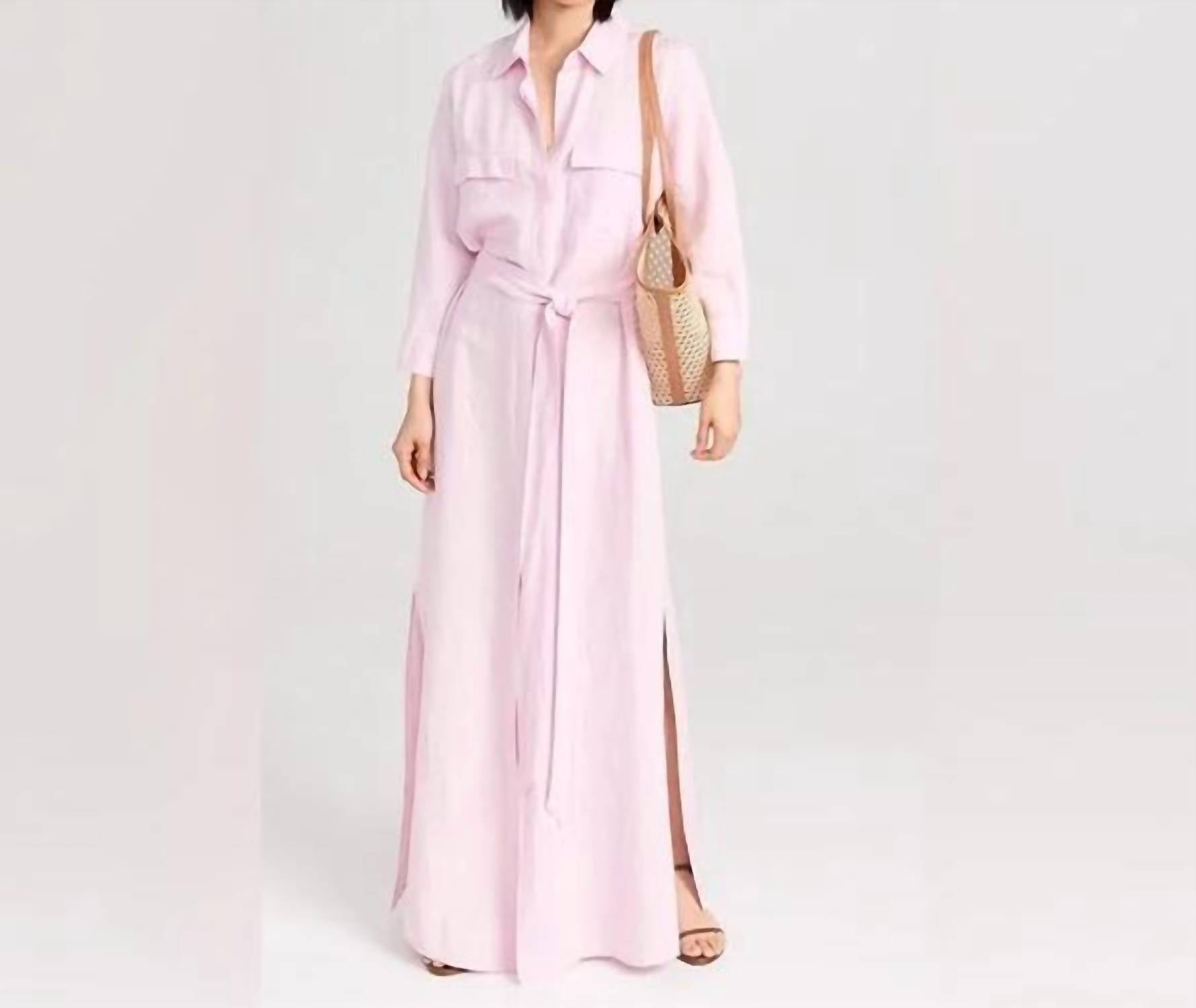 Who doesn't love a good maxi dress? This one you'll be reaching for season after season. Point collar • Three-quarter length sleeves, button cuffs • Front concealed full button placket • Flap patch chest pockets • Self-sash tie at waist • Side slit pockets • Side slits at skirt • Back yoke and inverted-pleat detail Linen/Viscose Blend