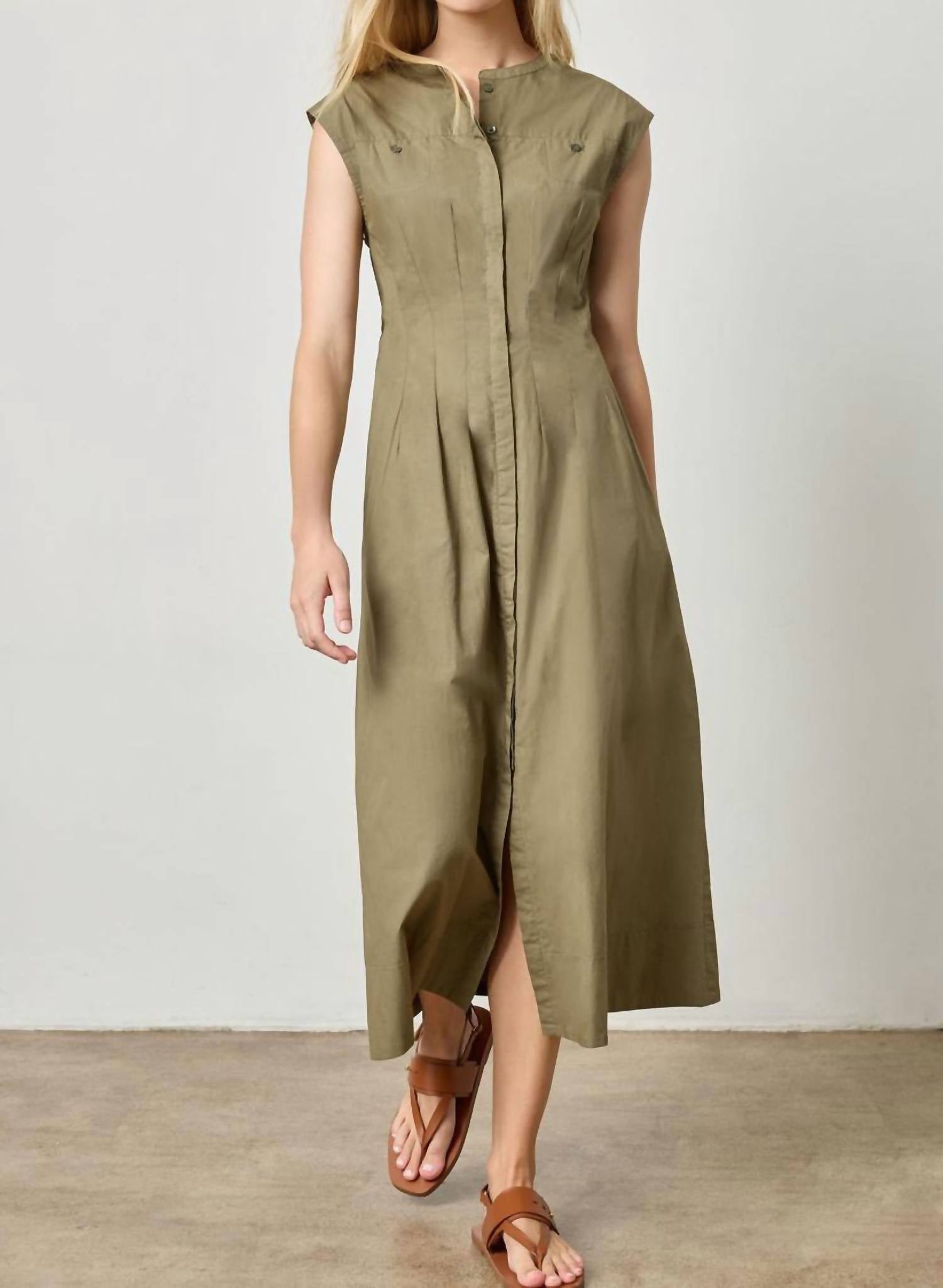 Style this maxi with your favorite statement necklace and sandals for the perfect look. Meet the Seamed Maxi Dress by Lilla P, perfect for adding a touch of elegance to any occasion. Crafted from 100% Cotton, this dress features a solid color in kelp with a classic crewneck and flattering A-line silhouette. Designed with cap sleeves, this engaging maxi dress includes convenient pockets and a button closure for tailored fitting. Easy to maintain, it's machine washable and best line dried.