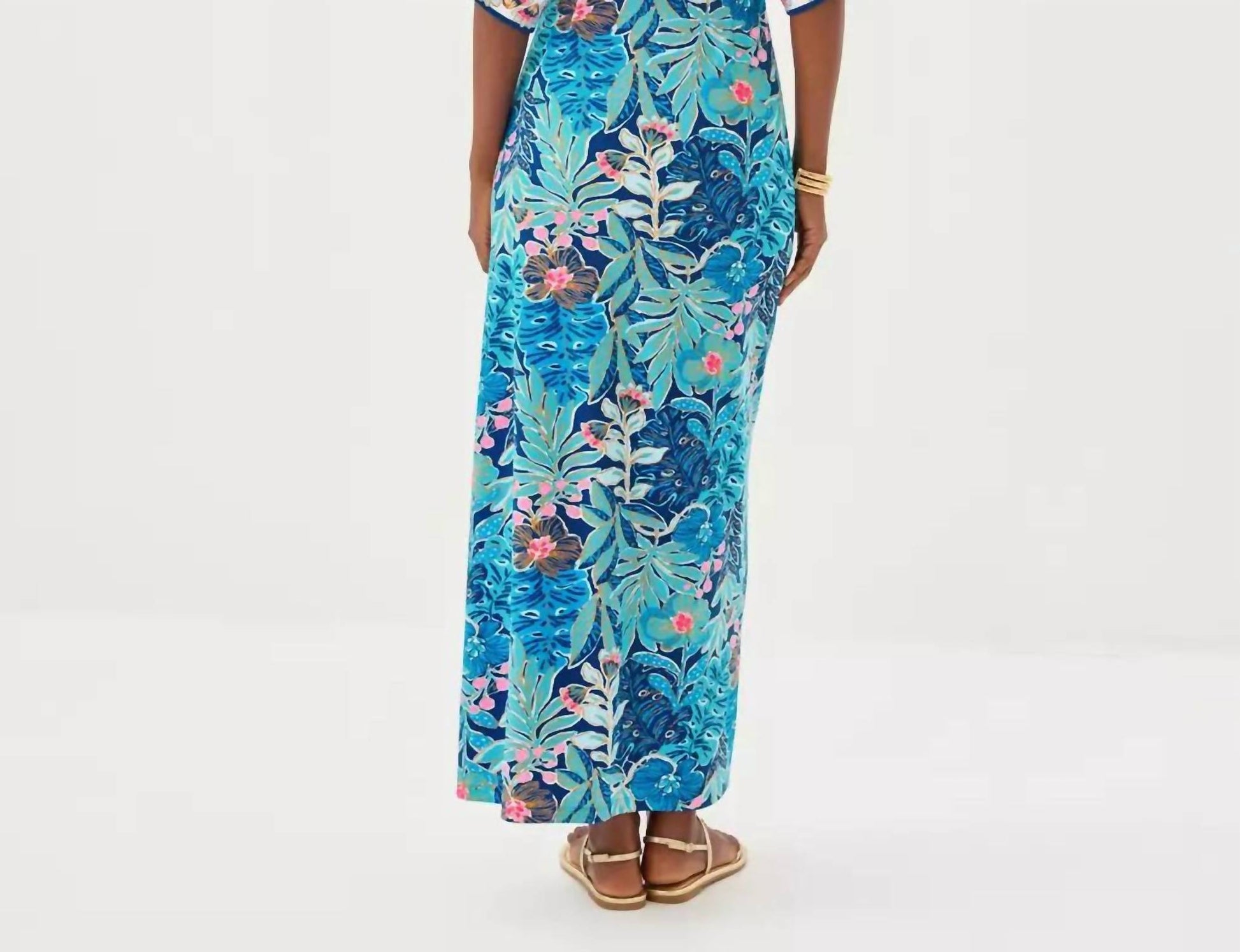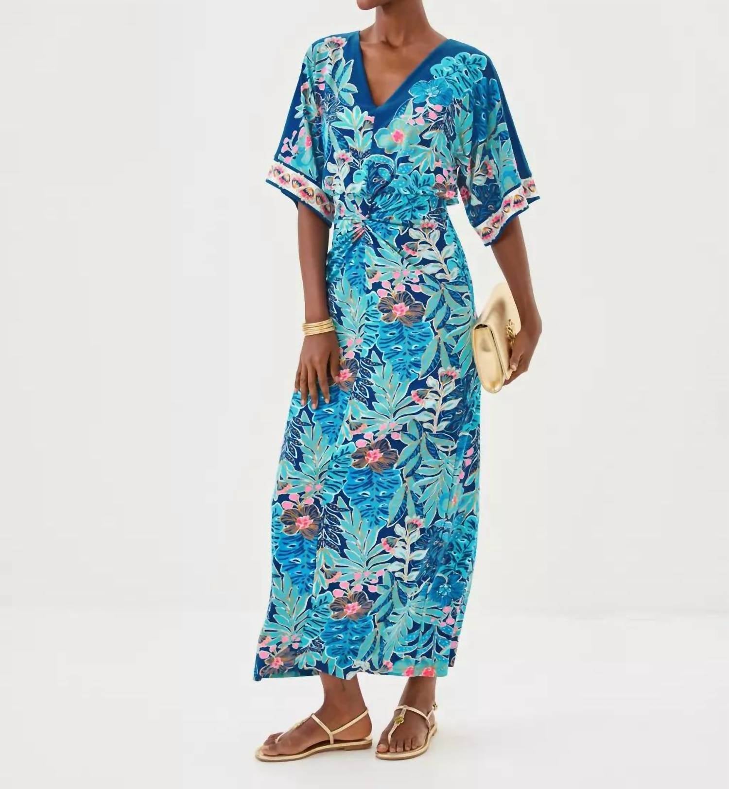 A maxi dress that is just as cute as it is comfortable. Step into elegance this summer with the Adalyn Maxi Dress by Lilly Pulitzer, featuring elbow-length kimono sleeves for added flair. Crafted in a straight fit silhouette, this kaftan-style dress comes in a vibrant navy floral print, perfect for your next vacation. Measuring 57" from shoulder to hem, it offers a flattering fit against the chest and hips, with more room at the waist. Imported with a pull-on closure, this boho-chic piece is as easy to wear as it is to love.