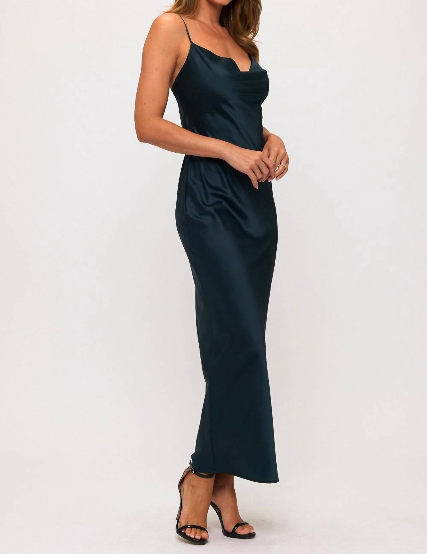 Who doesn't love a good maxi dress? This one you'll be reaching for season after season. Introducing the Cowl Neck Maxi Slip Dress by Lovely Day, an elegant choice for any evening event with an understated quiet luxury in dark teal. Featuring spaghetti straps and a graceful cowl neckline, this slip silhouette dress effortlessly combines sophistication with comfort. Made for formal occasions, its pull-on closure adds simplicity.