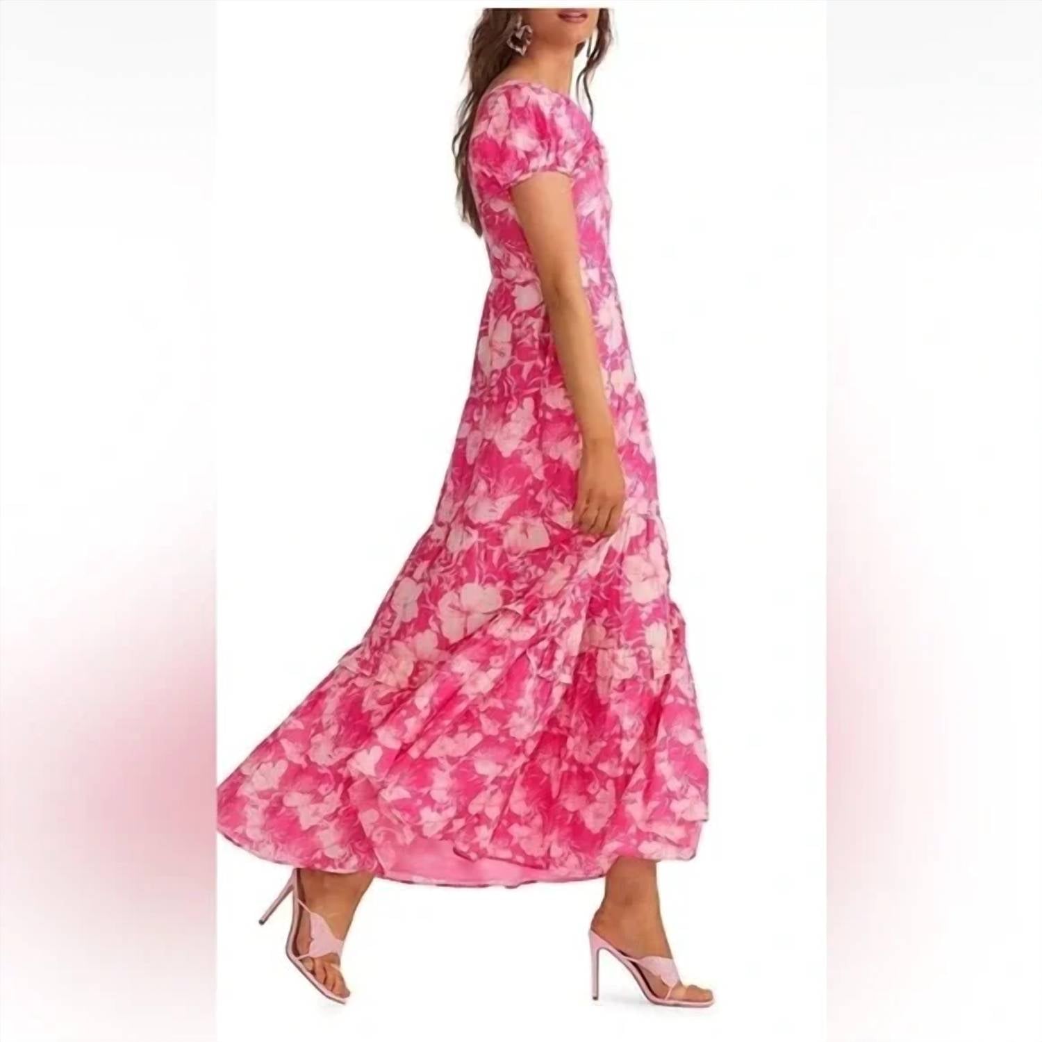 Who doesn't love a good maxi dress? This one you'll be reaching for season after season. Embrace the beauty of spring with the Karalie Floral Maxi Dress from LoveShackFancy in a vibrant Holiday Sun Fuschia. This boho chic dress features short sleeves and a feminine A-line silhouette with a scoopneck, perfect for evening events. Made from 100% cotton, it offers a pull-on closure for effortless wear. Care instructions include machine wash and lay flat to dry, emphasizing both ease and practicality.
