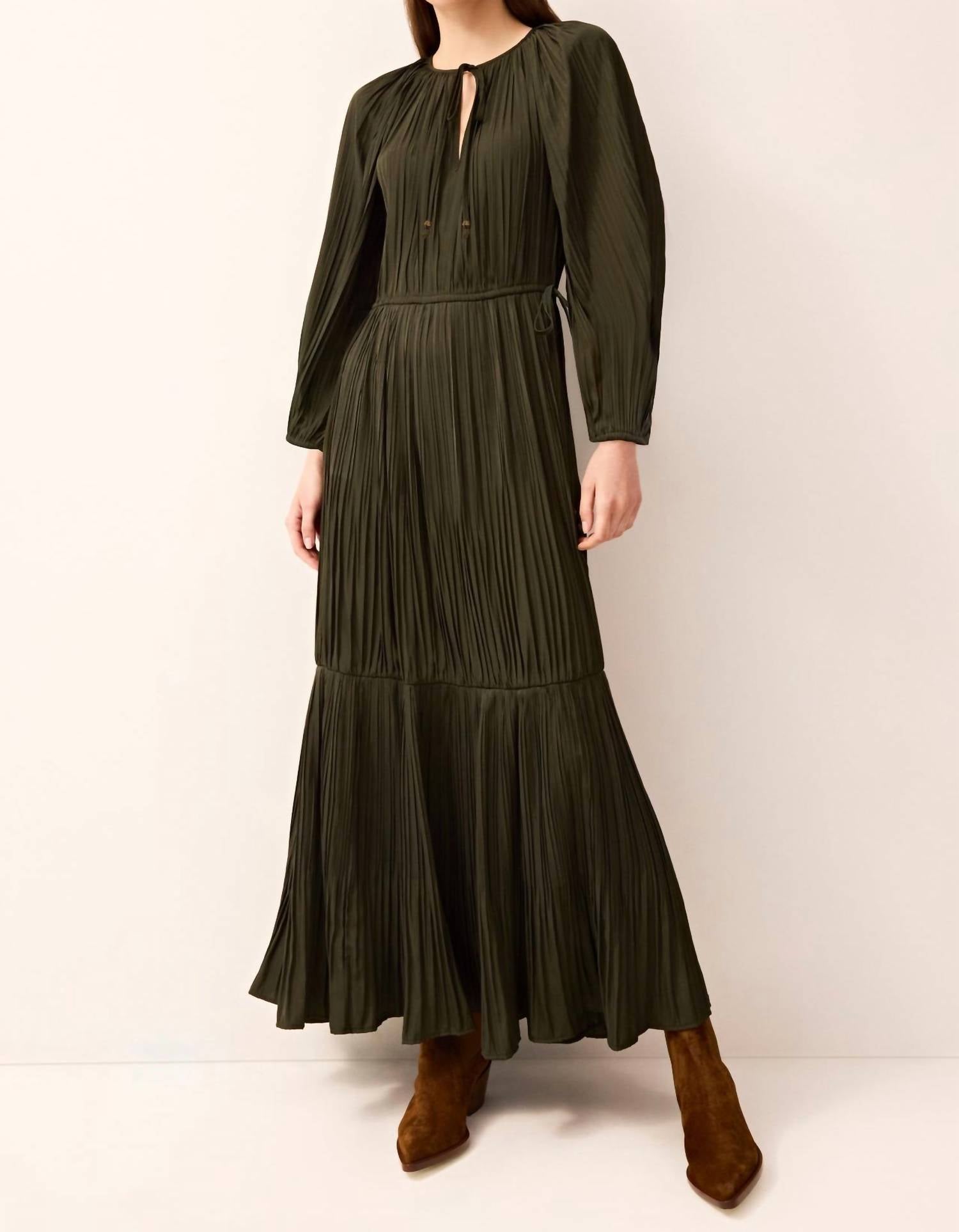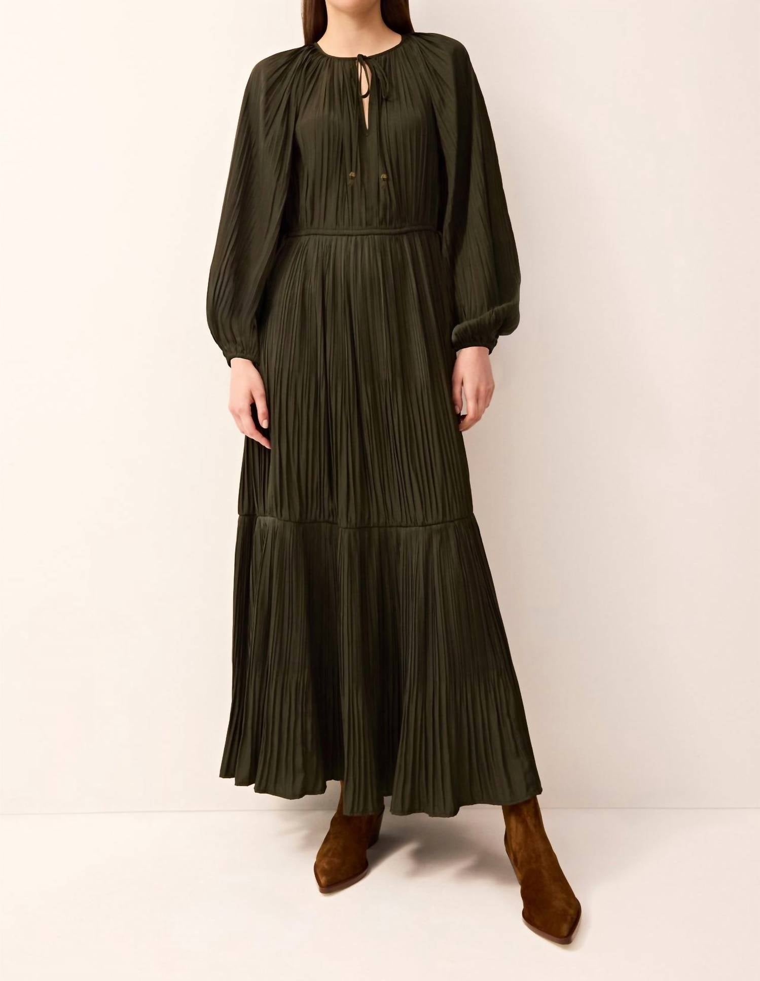 Style this maxi with your favorite statement necklace and sandals for the perfect look. Elevate your style with the Marie Oliver Perrin Maxi Dress, designed in a captivating Rosin hue perfect for fall. This long sleeve, pull-on silhouette features a drawstring waist for a custom fit, and pleated details that enhance its boho chic vibe. Crafted from 100% polyester, it offers a supersoft and drapey experience, ideal for evening events. Please dry clean only to maintain its sophisticated appeal.