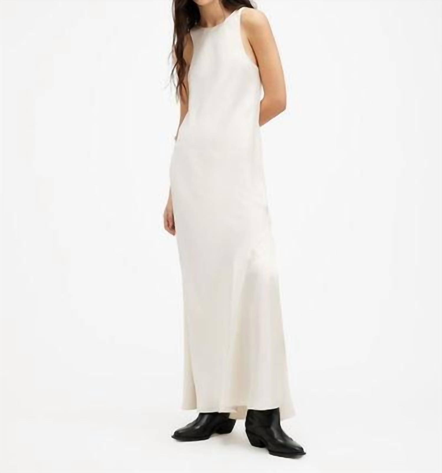 Who doesn't love a good maxi dress? This one you'll be reaching for season after season. Introducing the Lumi Maxi Dress by MIOU MUSE, an elegant two-piece ensemble that embodies effortless sophistication in a chic ivory shade. This stunning dress is composed of a solid polyester material featuring a flattering slip silhouette with a graceful fluid drape and eye-catching side slit. Layered with a delicate, crochet-knit cropped sweater, it adds texture and warmth with its long sleeves and crewneck. Designed for holiday parties and special occasions, this pull-on dress requires hand washing and flat drying to maintain its minimalistic charm.